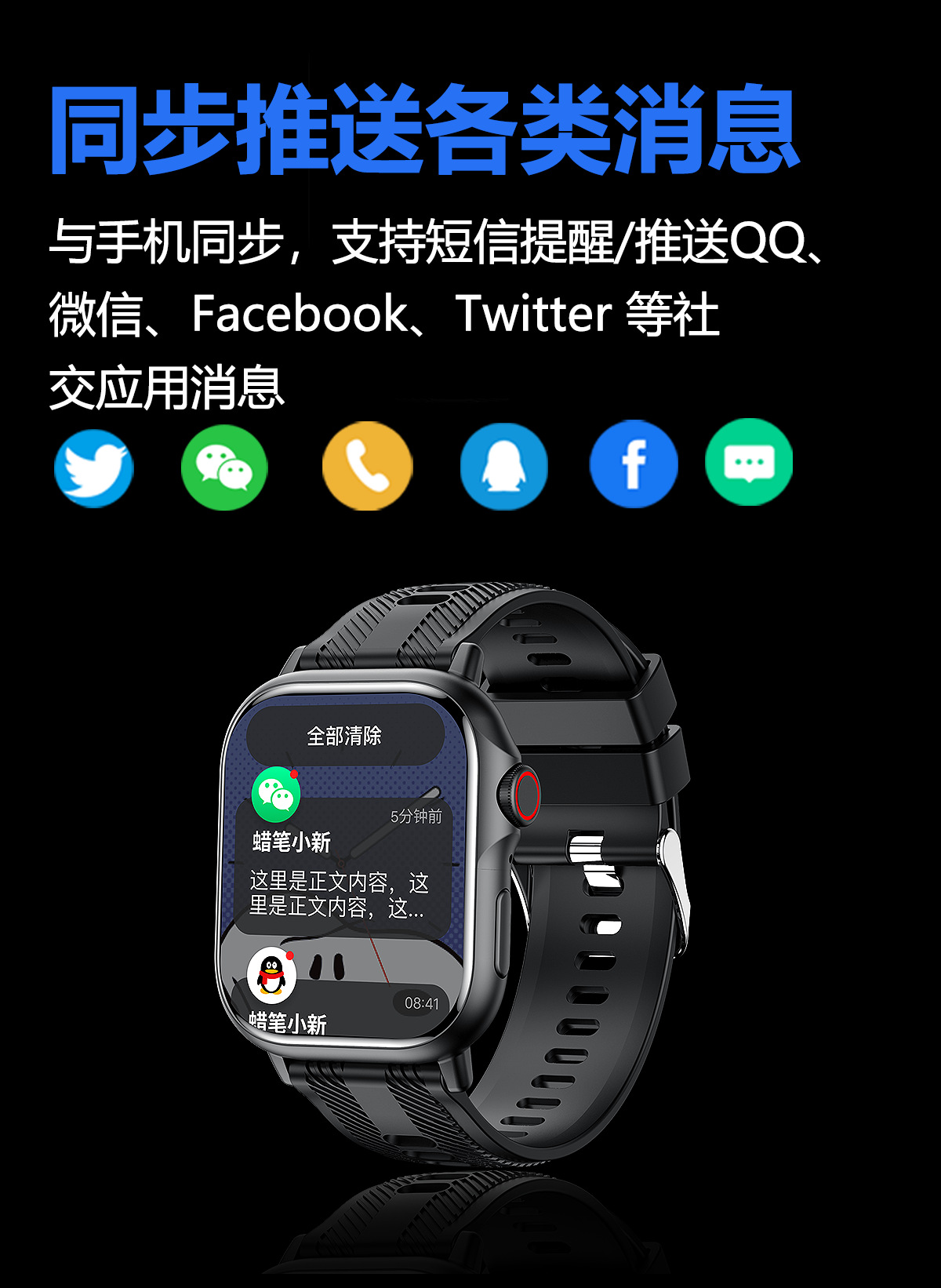 *本产品配件:手表*1,表带*1,充电线*1,说明书*1