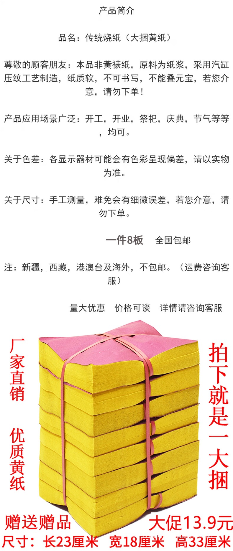 Большие пачки жертвенной бумаги, желтая бумага для жертвоприношений