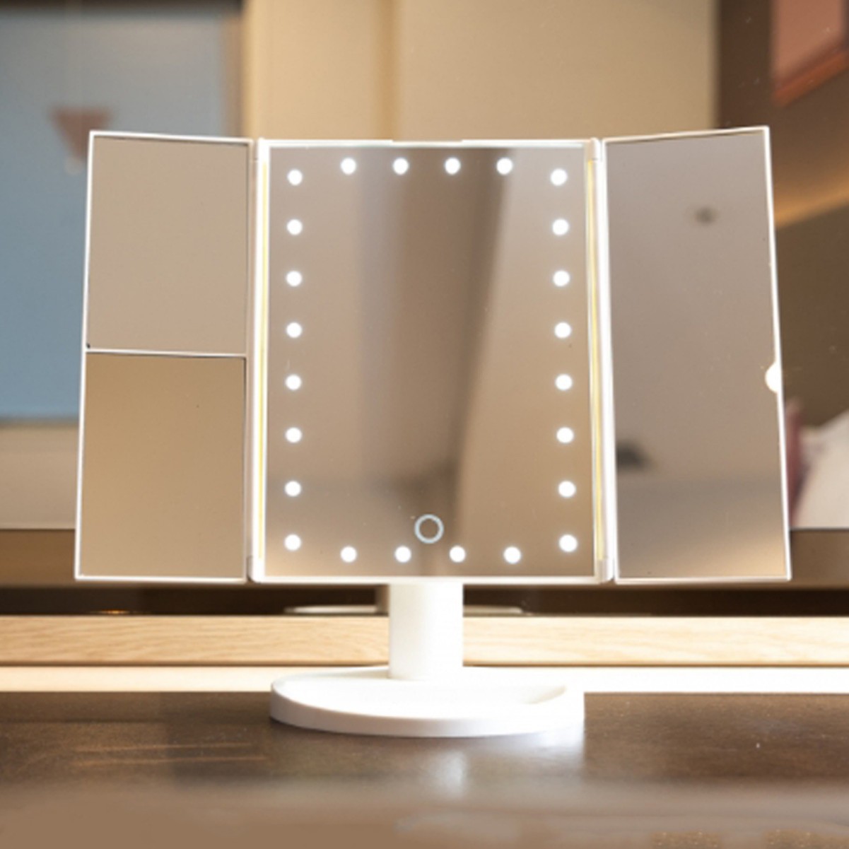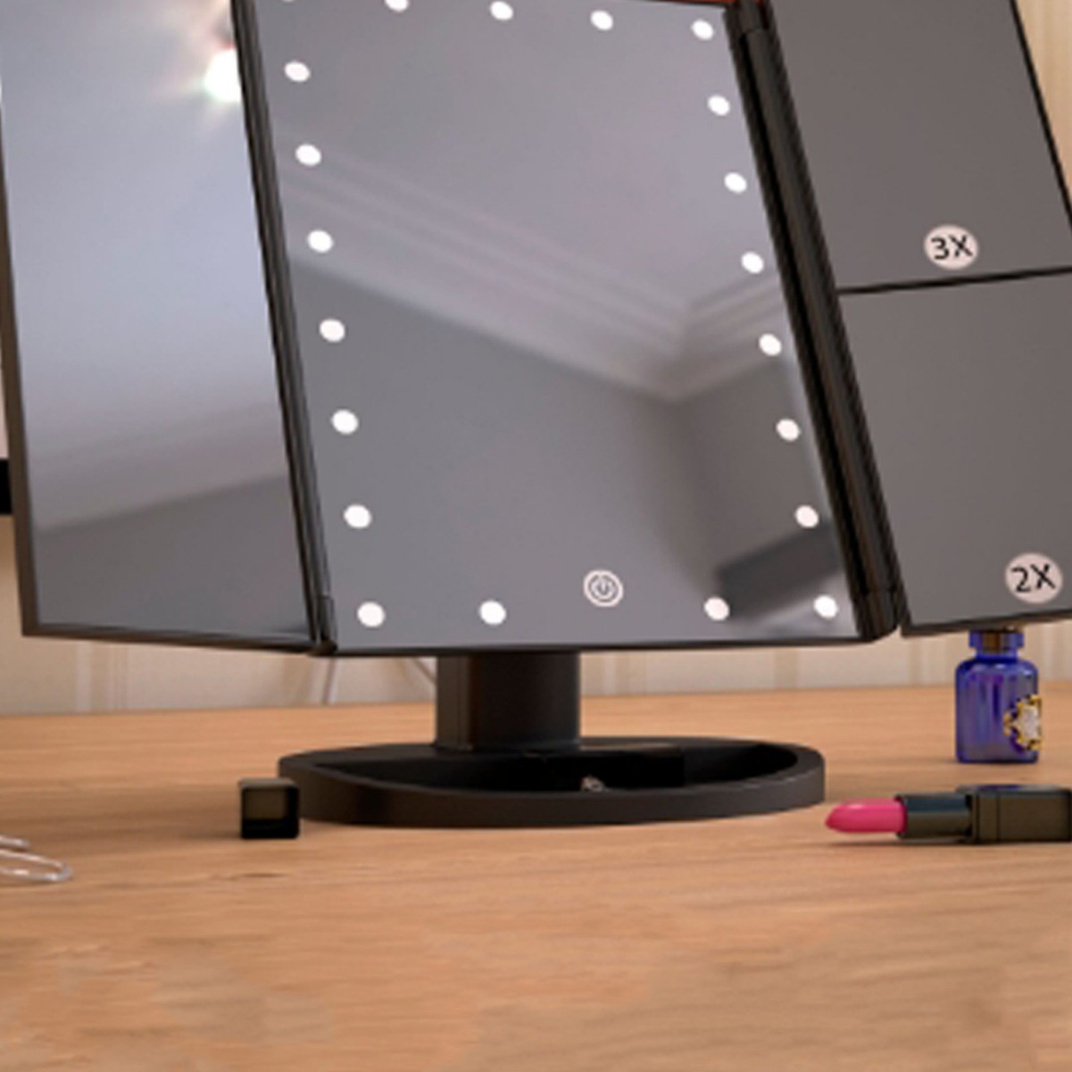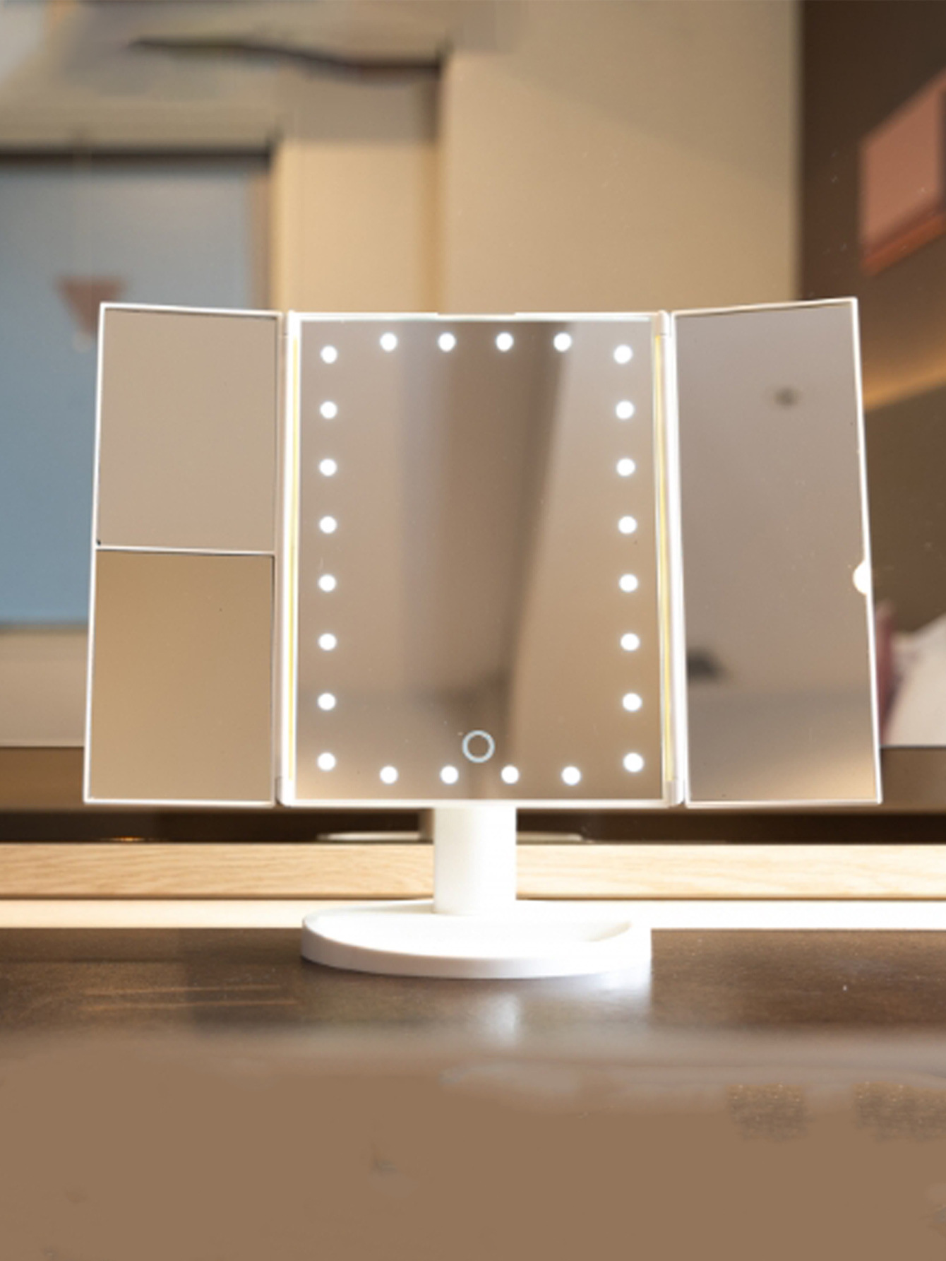 Кросс-Бордер Amazon в наличии Трехстороннее Зеркало с 22 Лампами LED Складное Общежитие Косметическое Зеркало Сумка для Хранения