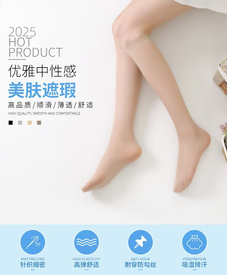 Летние чулки до середины икры для женщин, тонкие чулки цвета кожи