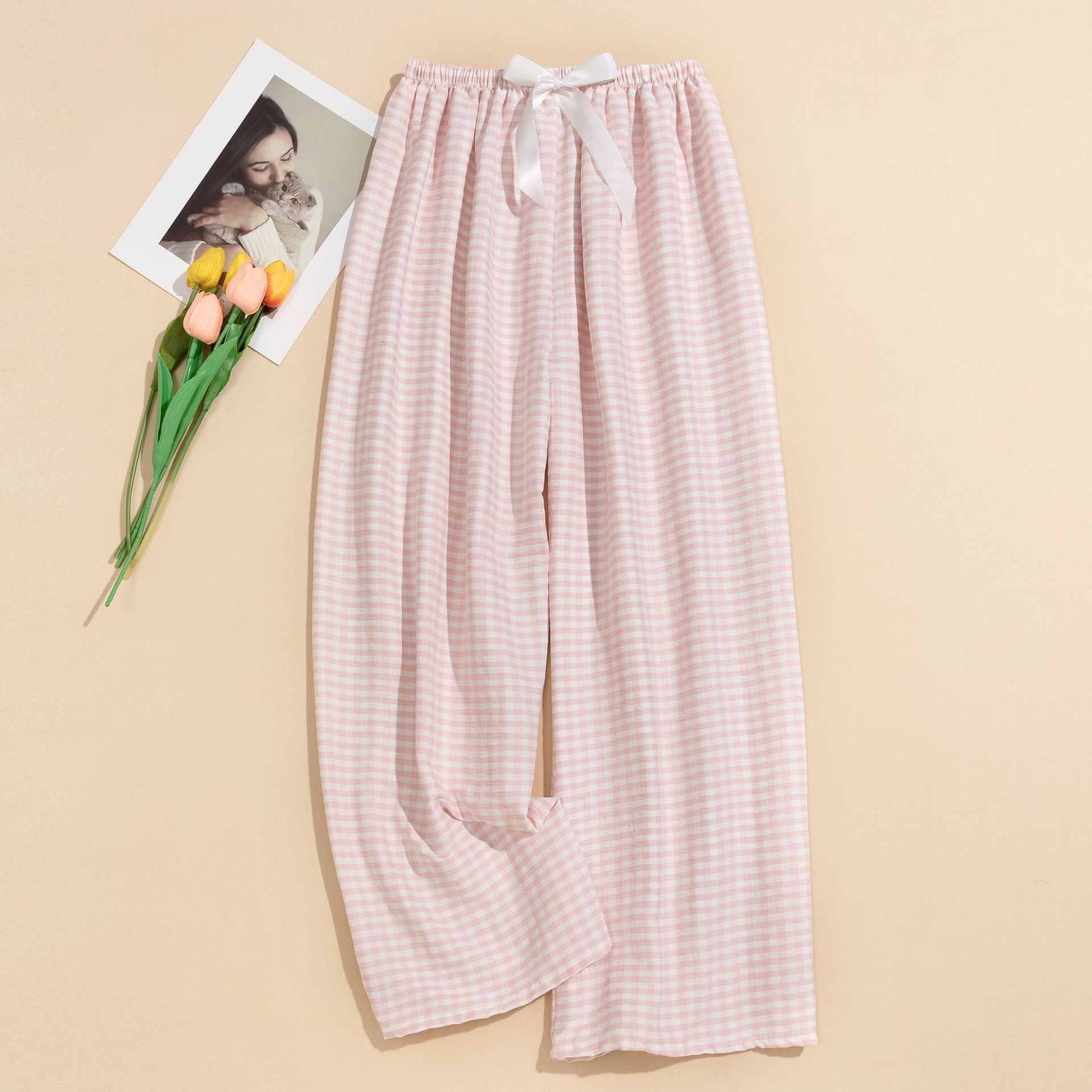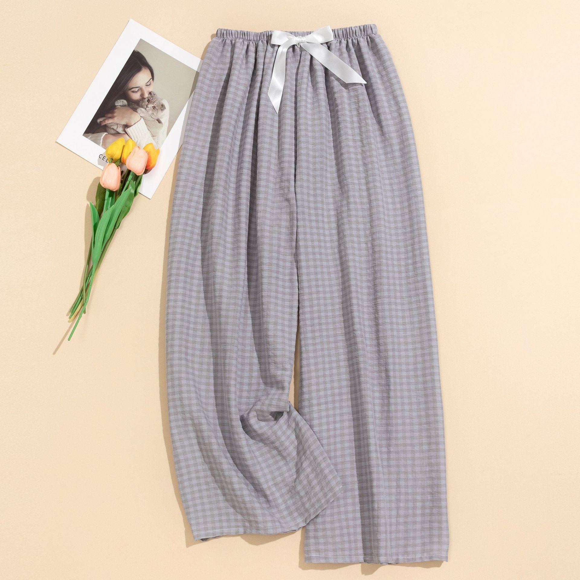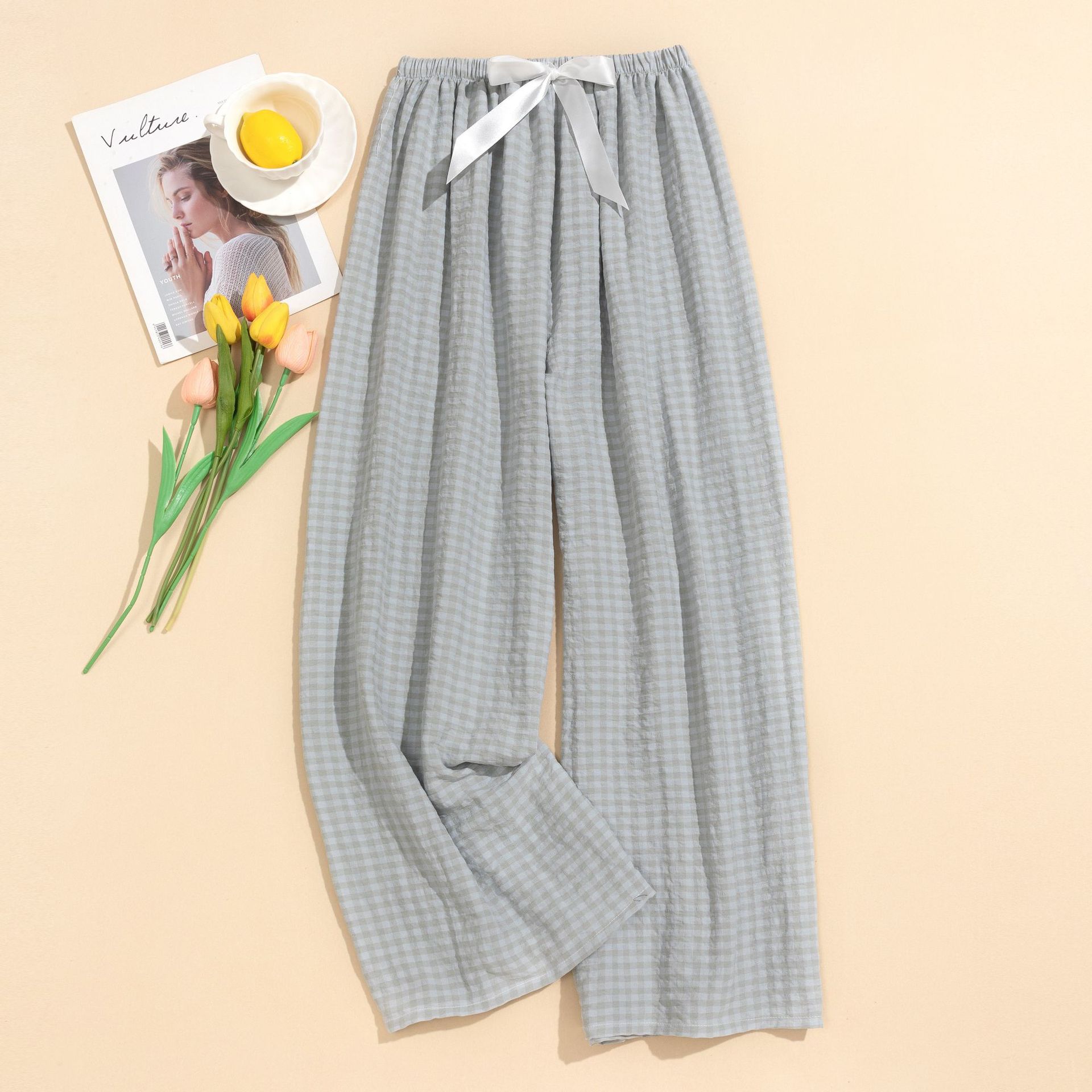 Пижамные штаны из облачного хлопка, женские, новый стиль, клетчатые домашние штаны, пряжа окрашенная, широкие брюки, большие размеры