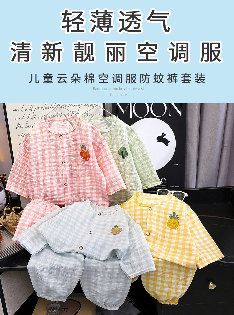 Детская пижама с верхом и брюками, весенне-осенний двухпредметный комплект для мальчиков и девочек, облачный хлопок, летний кардиган, мультяшная домашняя одежда
