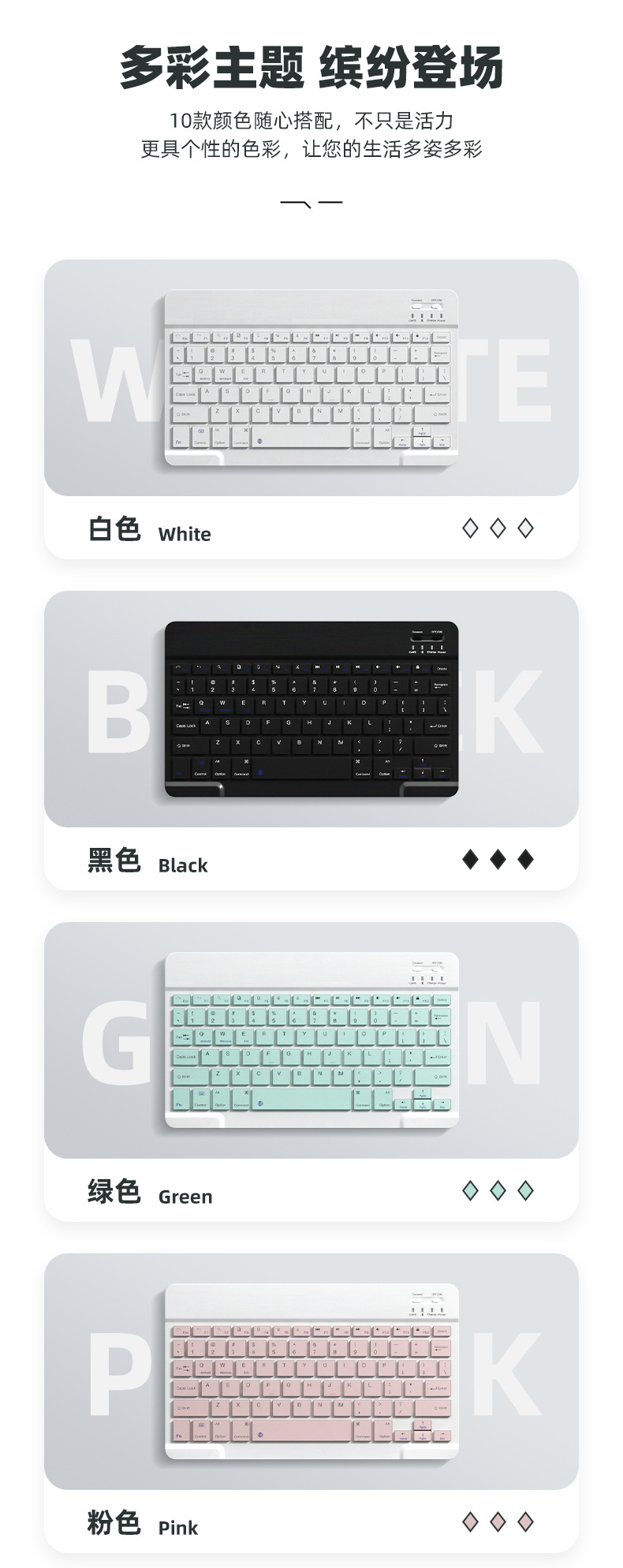 ![]() | 10inch bluetooth keyboard (rechargeable model) | Cyan | ¥13.0 / ≈ 158 ₽ | 70187 | 5923929581935 | |