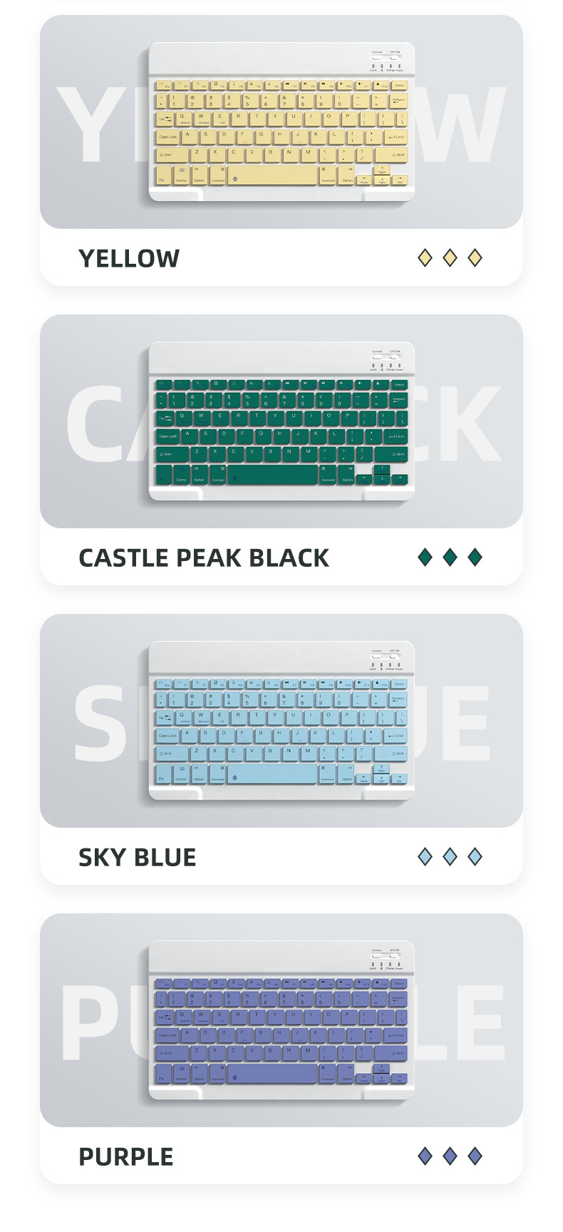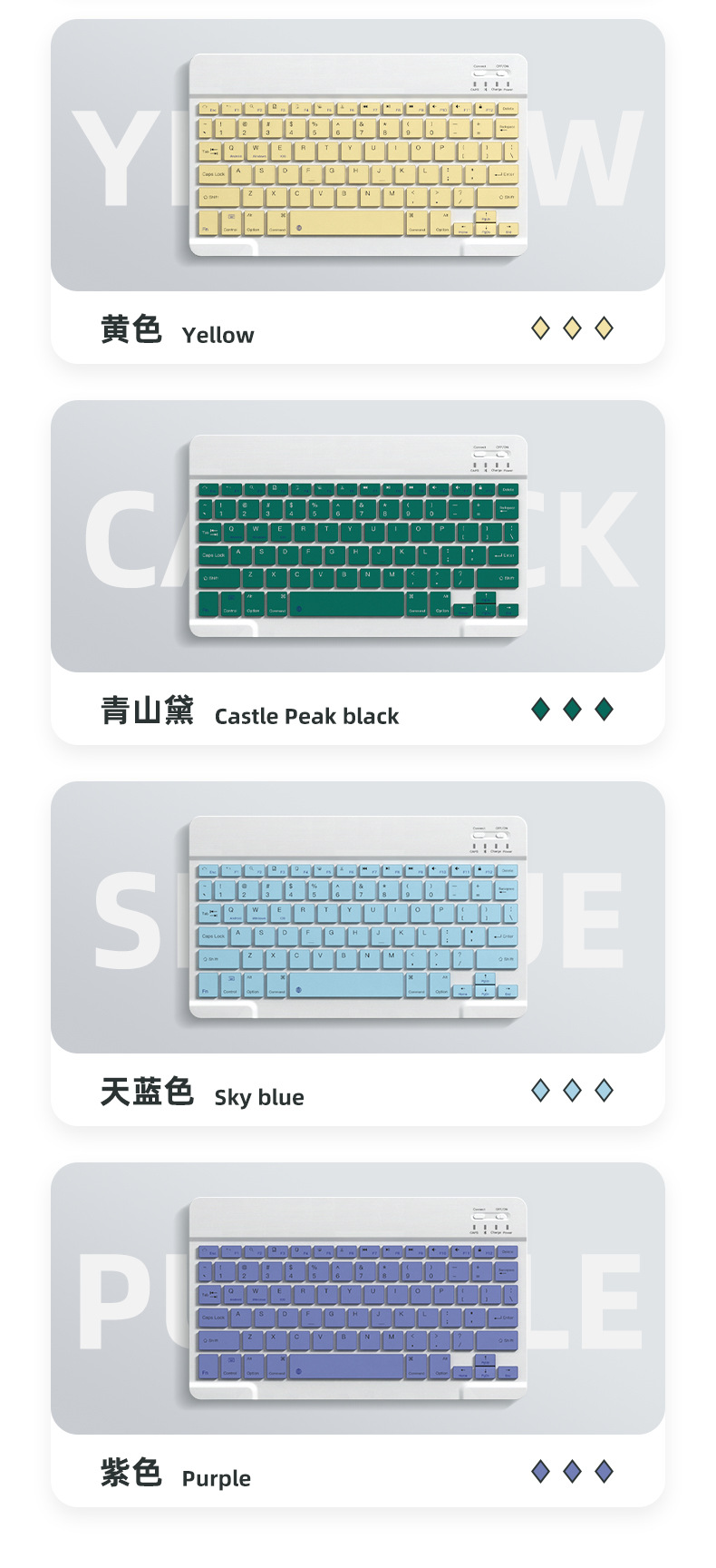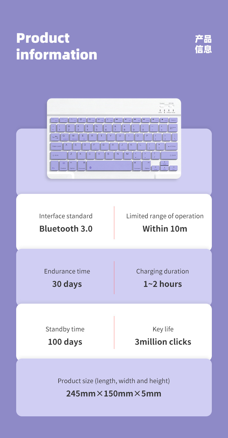 ![]() | 10inch bluetooth keyboard (rechargeable model) | Purple gray | ¥13.0 / ≈ 158 ₽ | 70188 | 5923929581946 | |