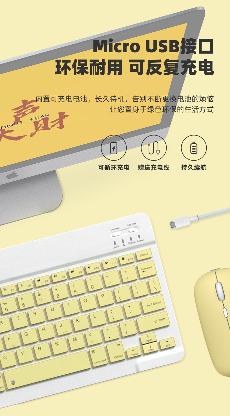 Беспроводная клавиатура Bluetooth для мобильного телефона, планшета, нейтральный 10 дюймов, набор клавиатуры и мыши, зарядка, подходит для Lenovo и iPad