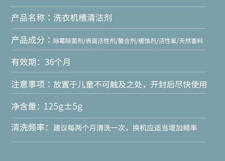 Чистящее средство для бака стиральной машины, 125г, 50г, дезинфекция и удаление запахов