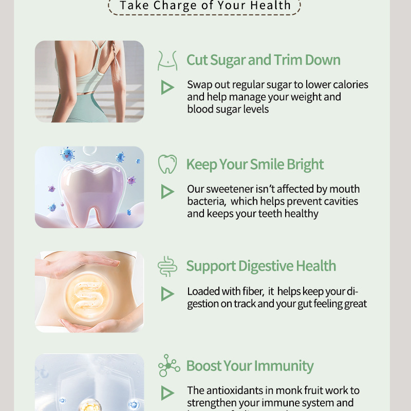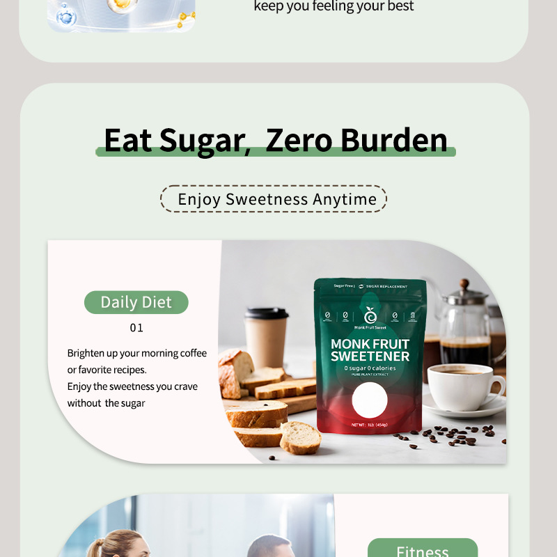 Улучшенная версия заменителя сахара Ло Хан Го, без калорий, вместо белого сахара, зарегистрирован FDA, эксклюзивная оптовая продажа