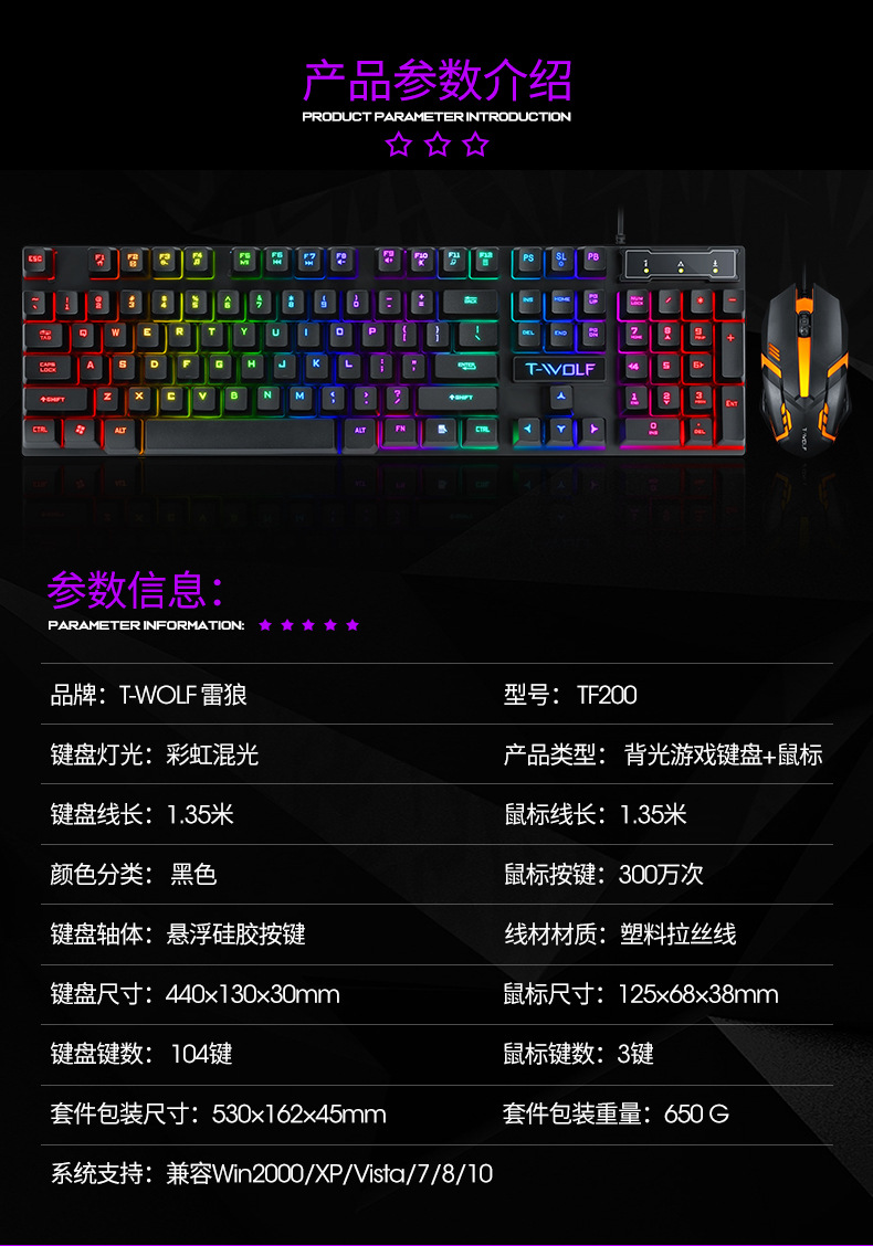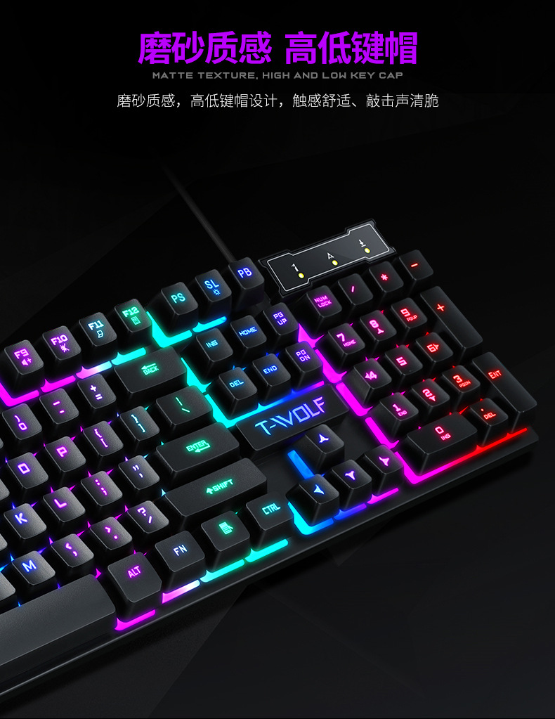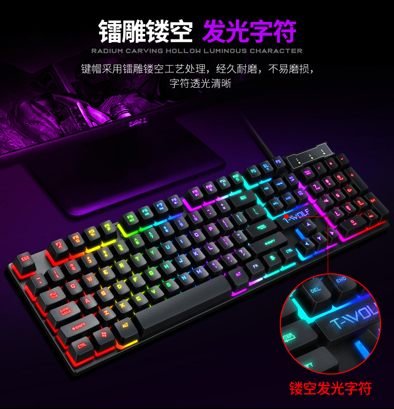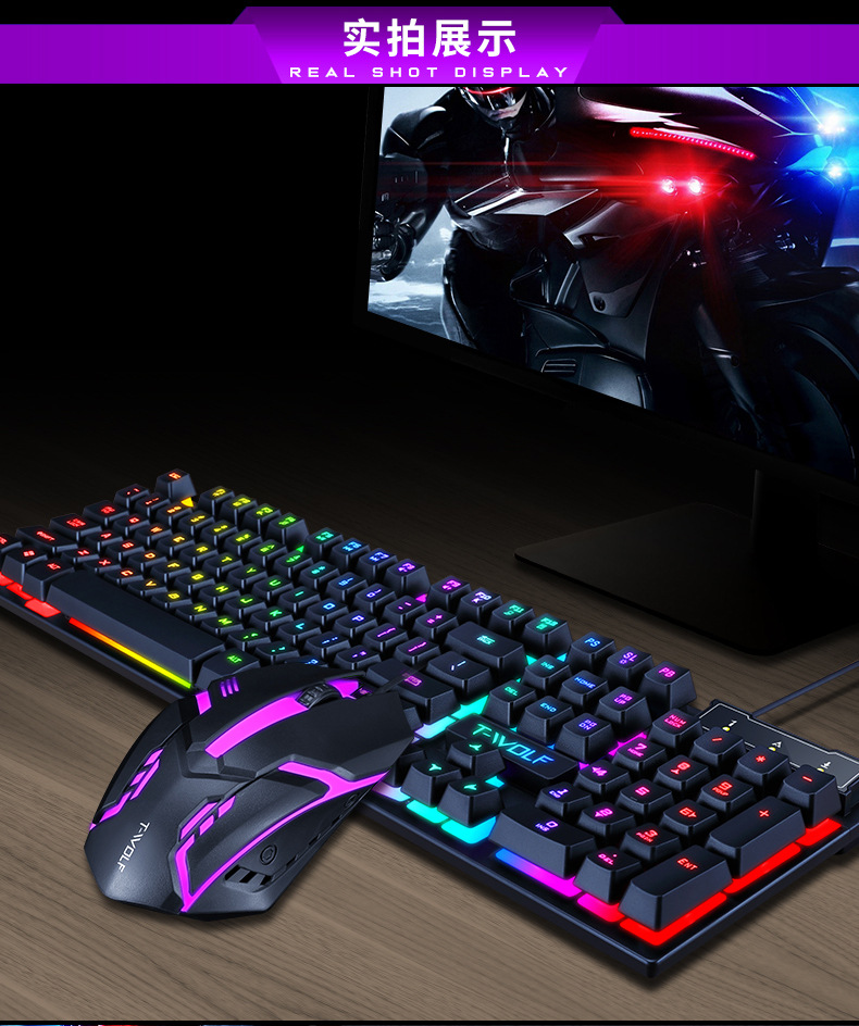 Проводной набор клавиатуры и мыши Thunder Wolf Tf200 с мембранными механическими клавишами, водонепроницаемый дизайн