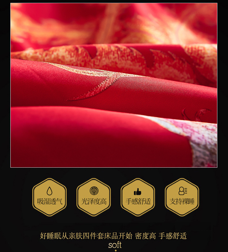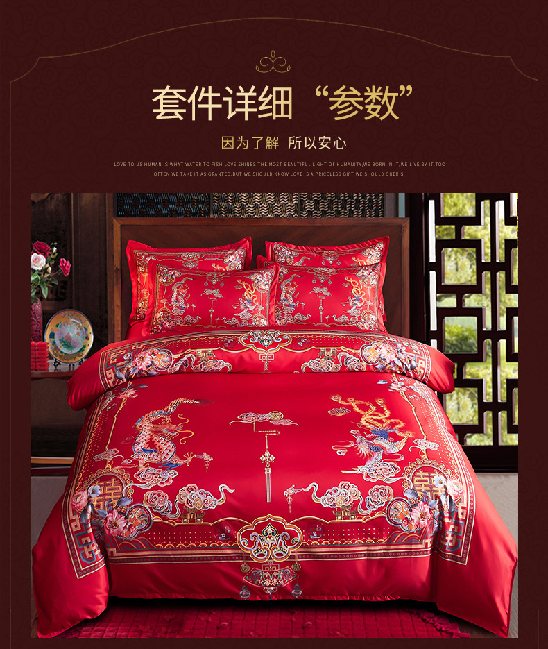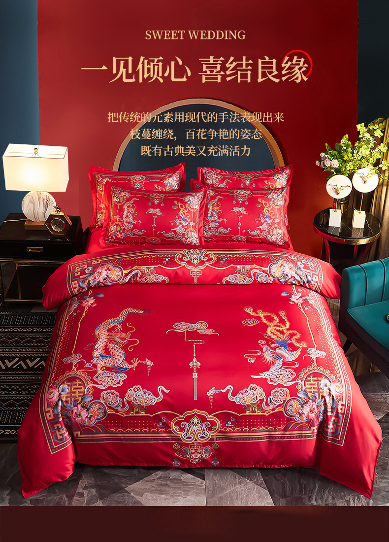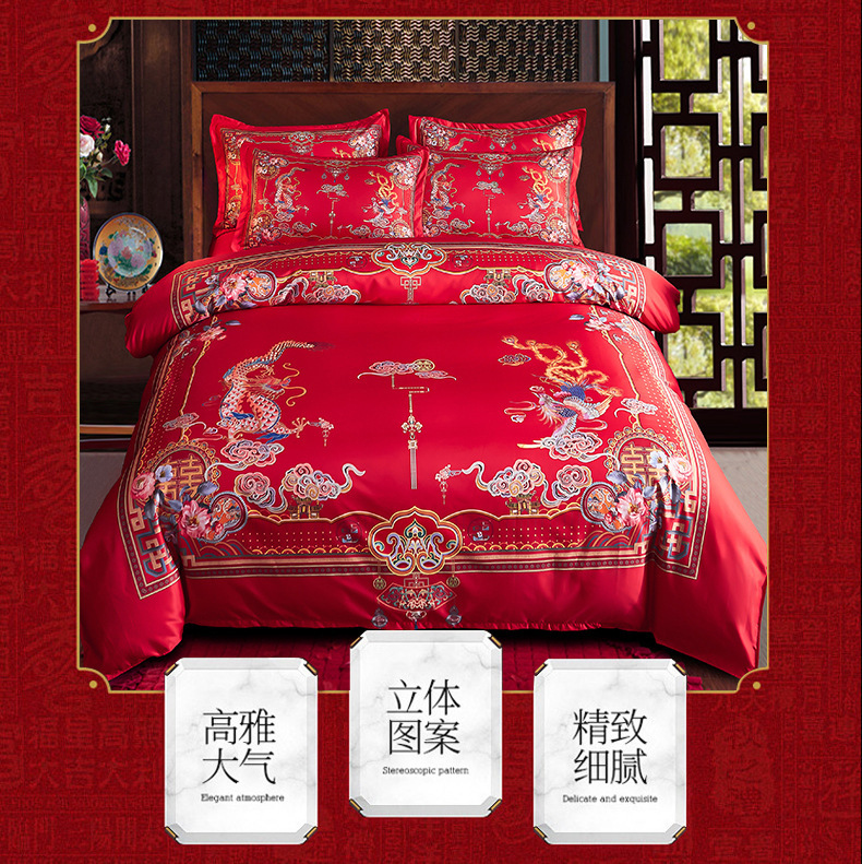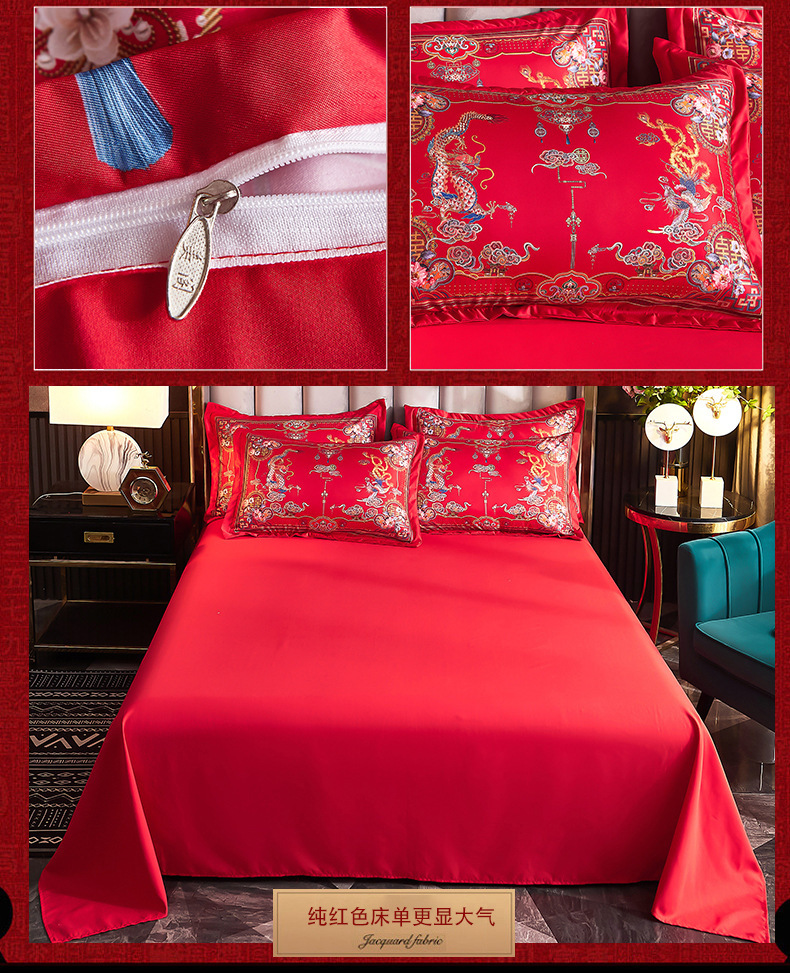 Свадебный комплект из четырех предметов, покрывало, простынь, вышивка дракона и феникса, большое красное постельное белье