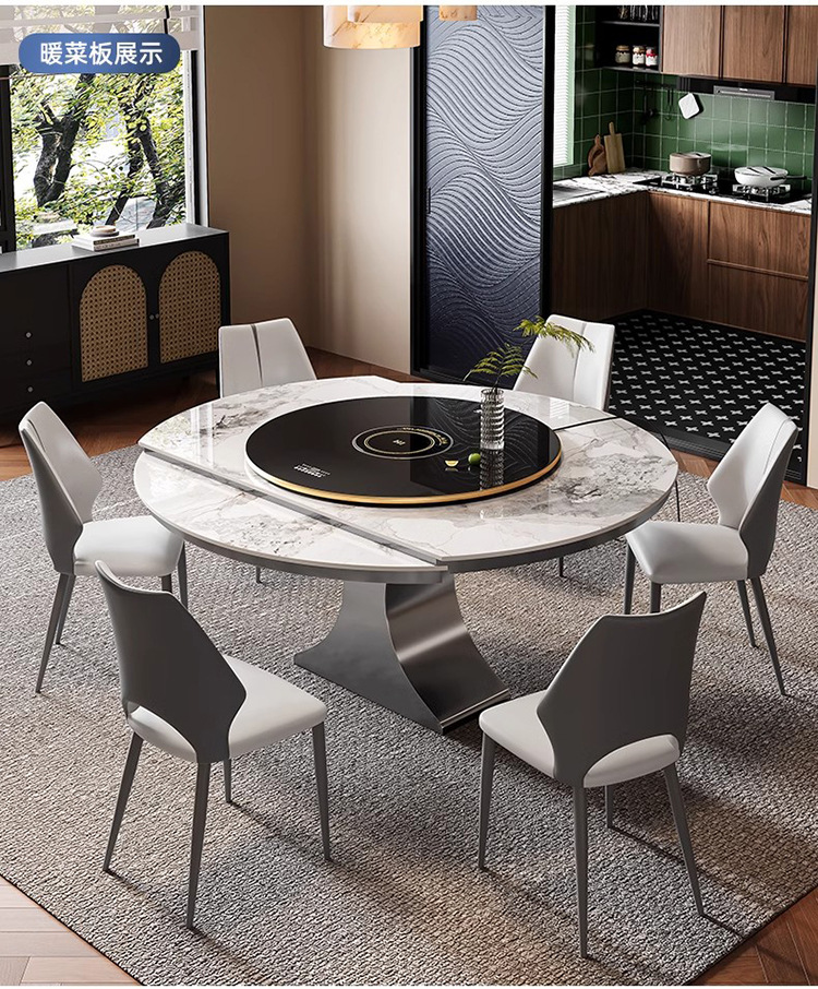 Двухфункциональный раскладной обеденный стол из каменной плиты, легкая роскошь, нержавеющая сталь, многофункциональный