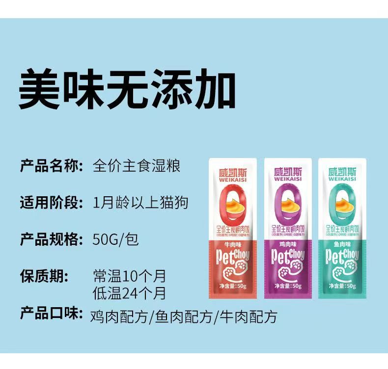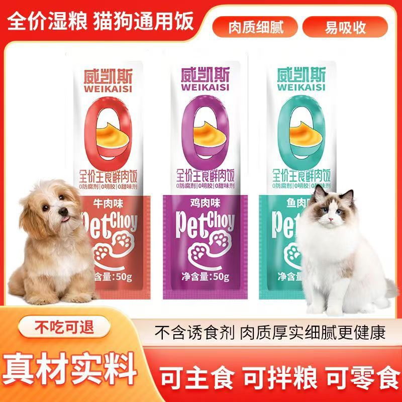 Поставки производителя влажного корма для питомцев, говядина с рисом для кошек, курица с рисом, рыба с рисом для собак, общий основной корм для кошек и собак 50 г