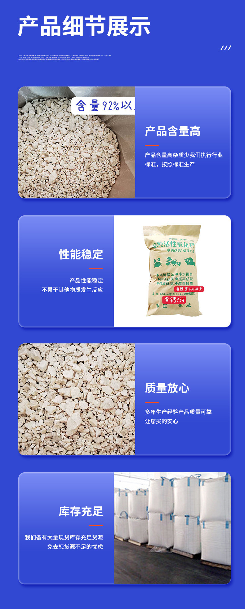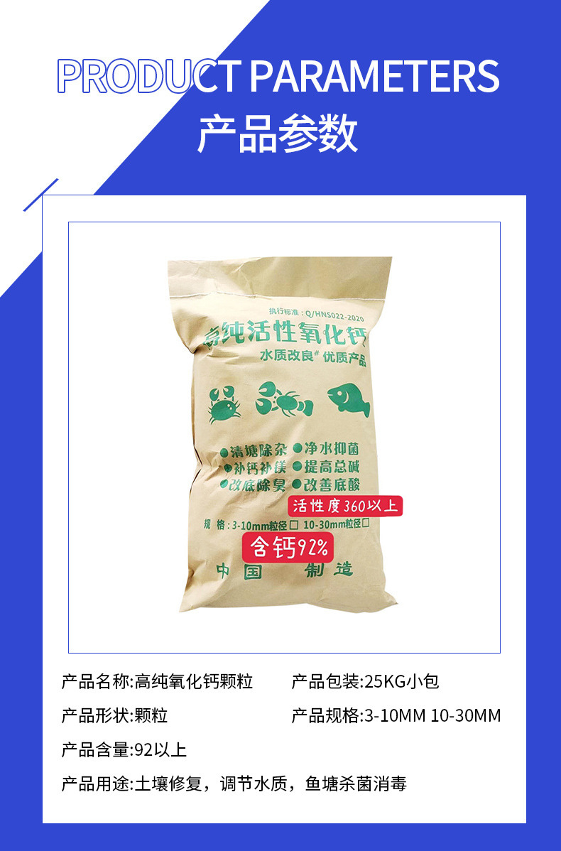 Гранулы активированного оксида кальция высокой чистоты из Ханчжоу, дезинфекция прудов для разведения, улучшение почвы, улучшение качества воды, дезодорация и удаление примесей