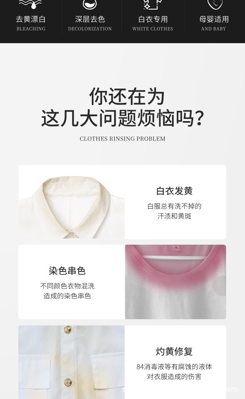 Отбеливатель для белой одежды, порошок для удаления пятен и желтизны, отбеливающая вода
