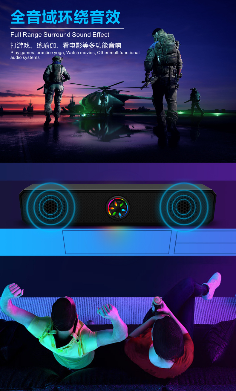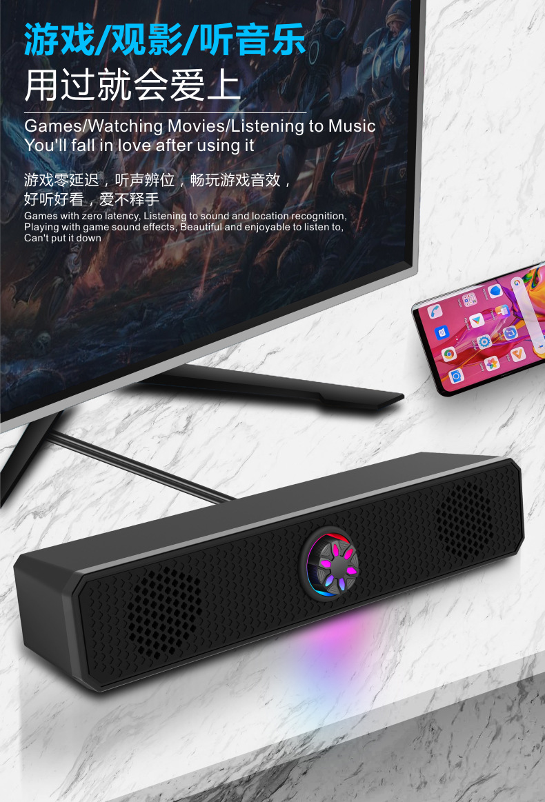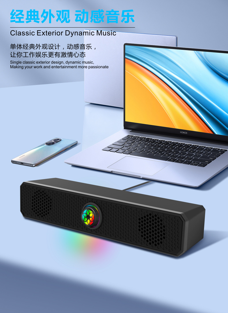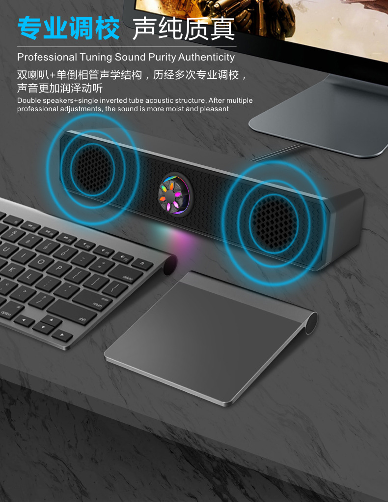 K2852 проводной светящийся полосовой динамик компьютерный ноутбук динамик плеер компьютерный динамик сабвуфер