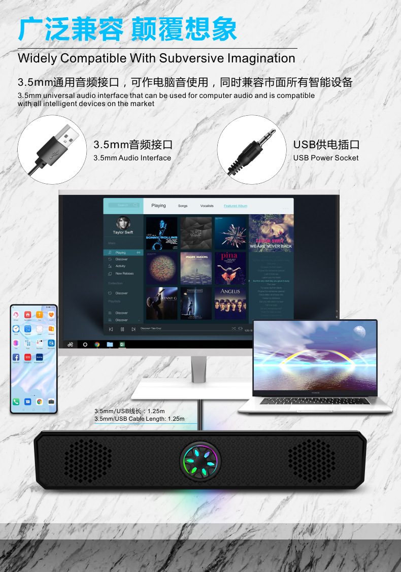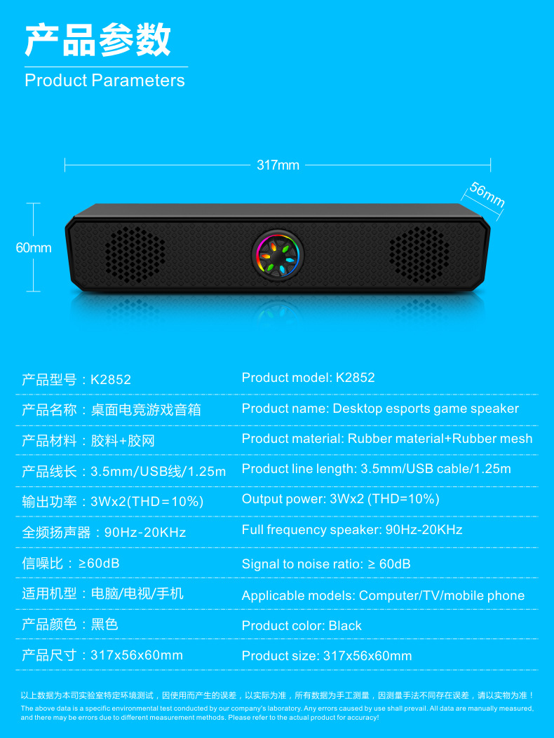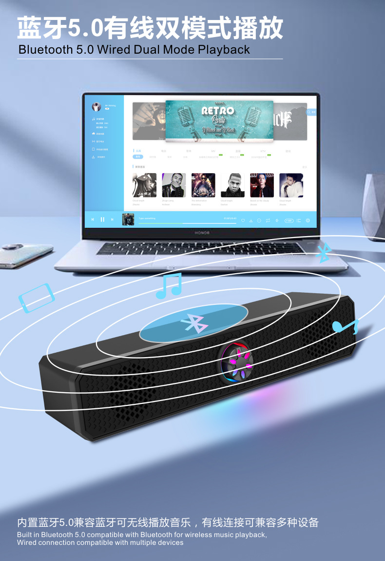 K2852 проводной светящийся полосовой динамик компьютерный ноутбук динамик плеер компьютерный динамик сабвуфер
