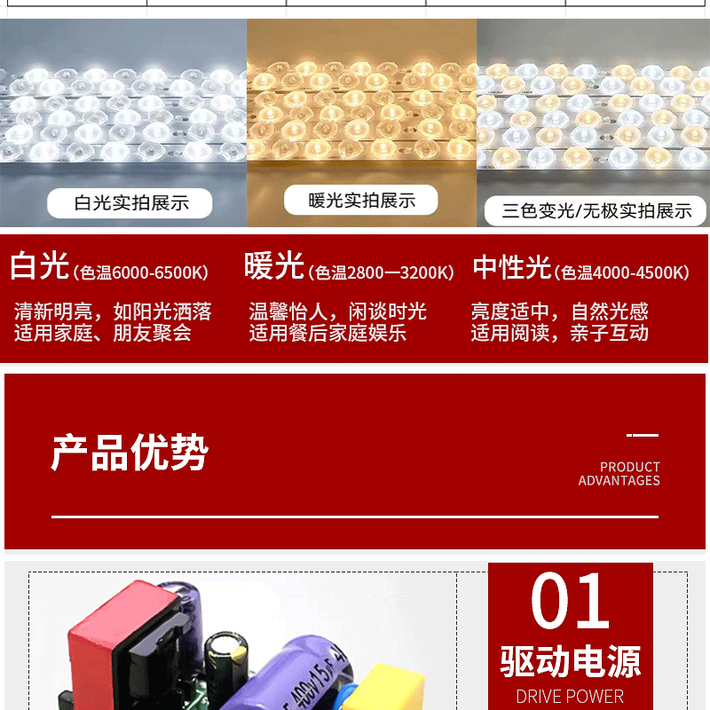 Полноспектровый светодиодный потолочный источник света, модуль с двухцветной линзой для домашнего модификации