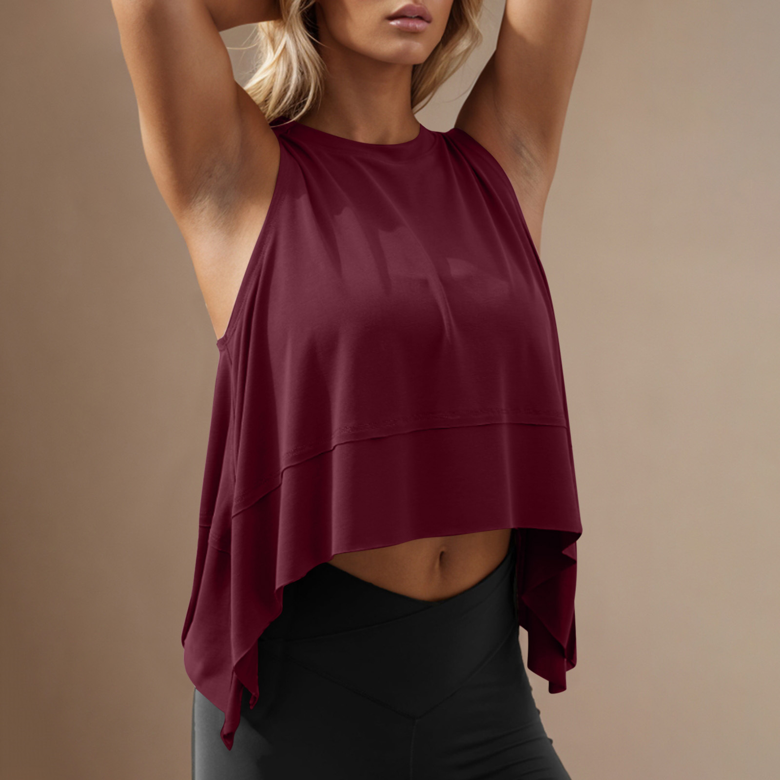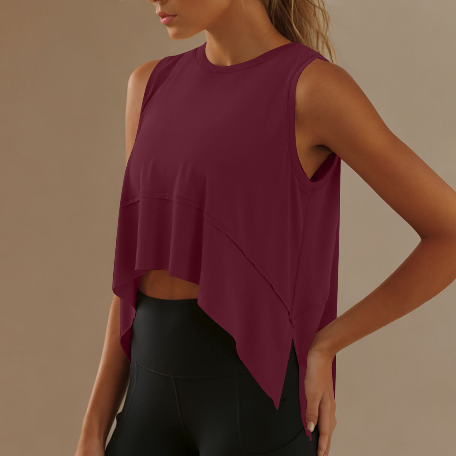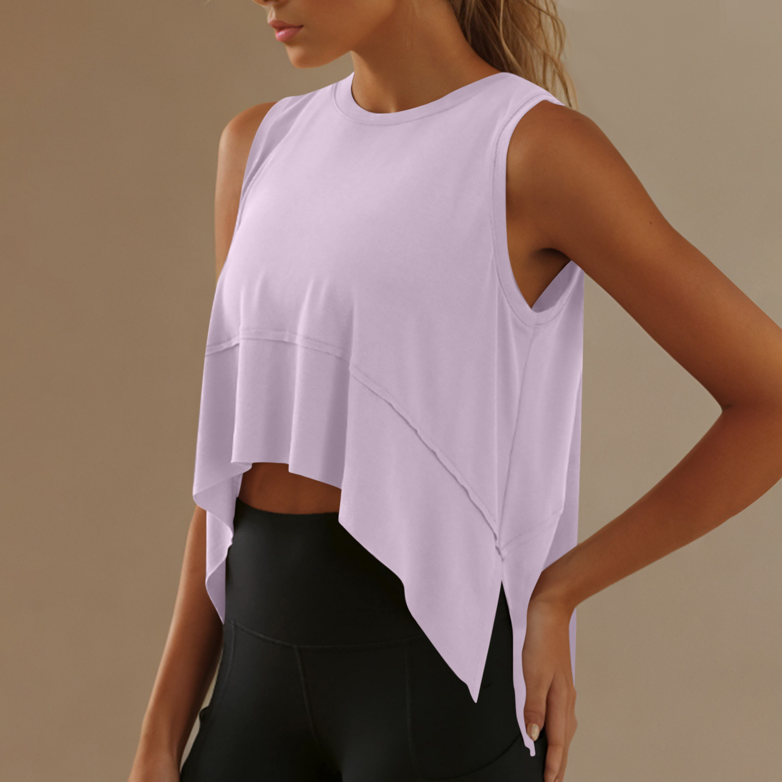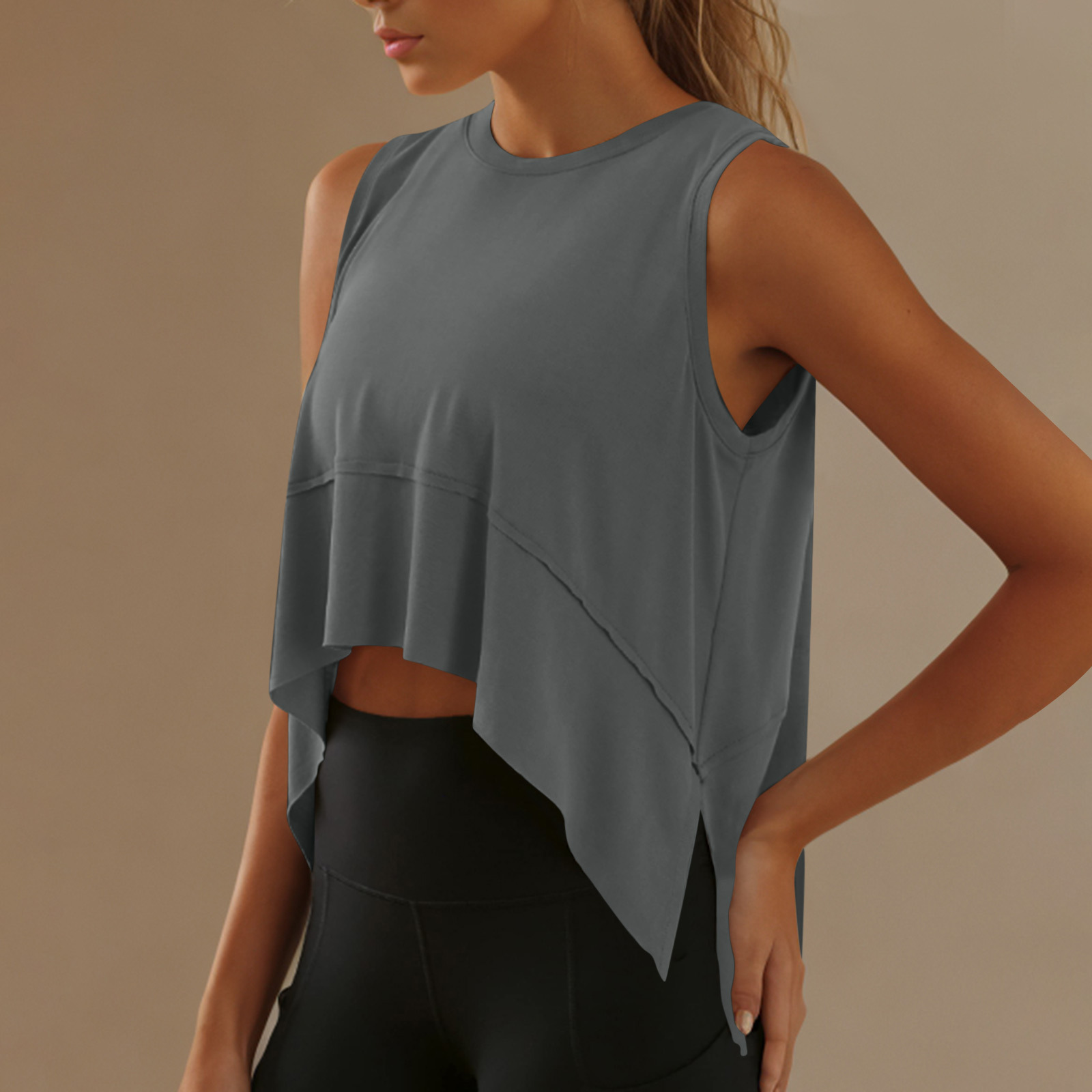 Новая европейская и американская безрукавка 2025 года, круглый вырез, асимметричный спортивный топ, свободный повседневный йога жилет для женщин