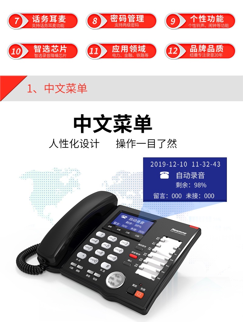 Newmine/Newman HL2008TSD-988(R), двойное хранилище, автоматическая запись, управление паролем, телефон