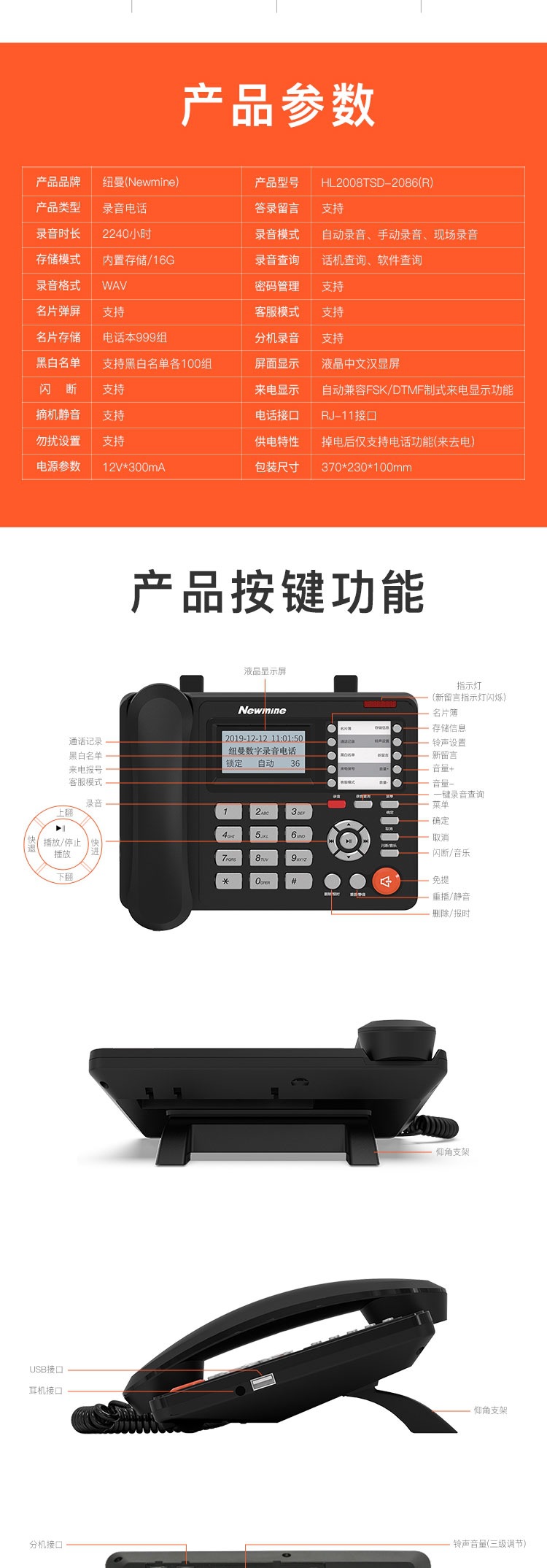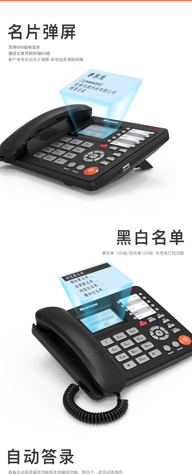Newmine/Newman 2086(R), IVR голосовая навигация, запись телефонного разговора, автоматический черно-белый офис, громкая связь