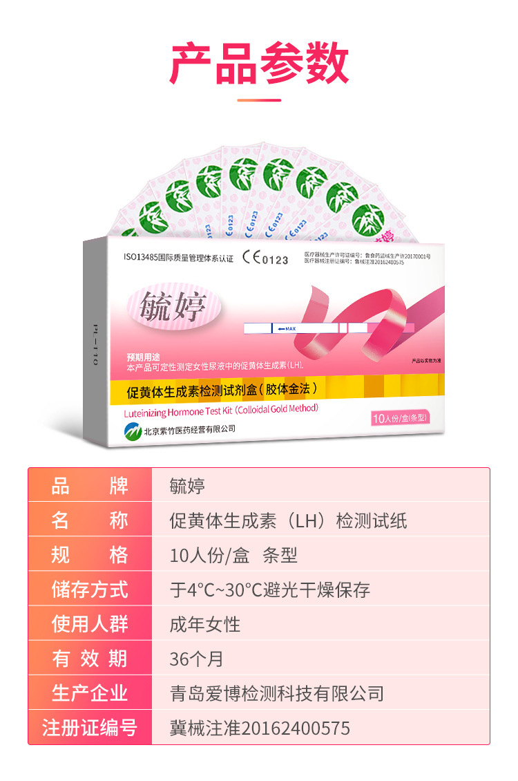 毓婷验孕条 条形码:6953123500756 箱规:10盒/条,400盒/箱