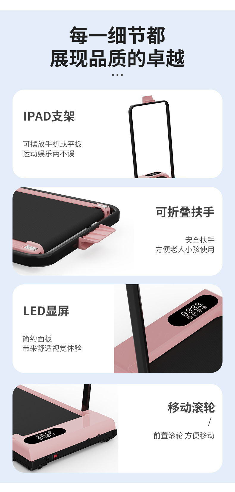 Розовая беговая дорожка, электрическая, для дома, маленькая, бесшумная, фитнес-оборудование