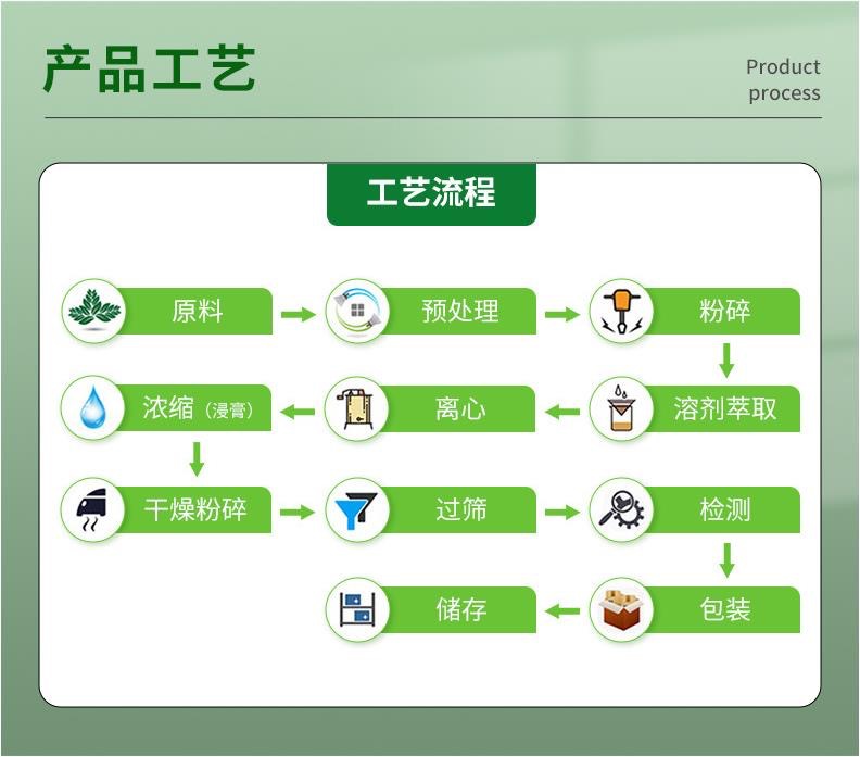 【生产工艺】:精选原料、清洗原料、3遍提取、浓缩、喷雾干燥成粉、过筛灭菌、包装。