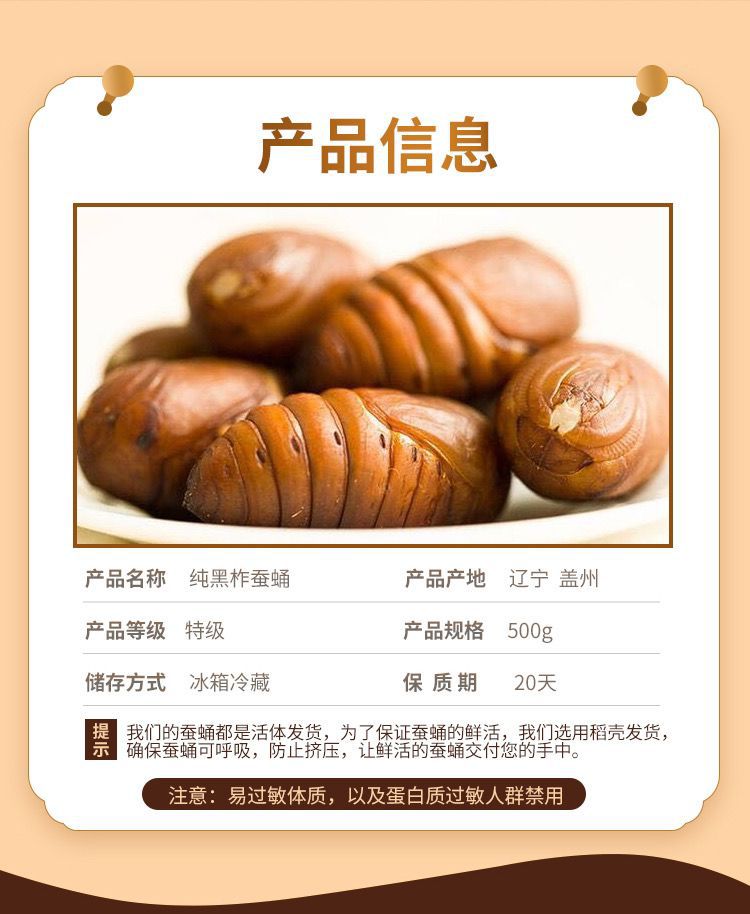 📦 | 0.5kg black pupa 3- 4cm | ¥56.56 / ≈ 688 ₽ | 9998 | 5736871613668 | |