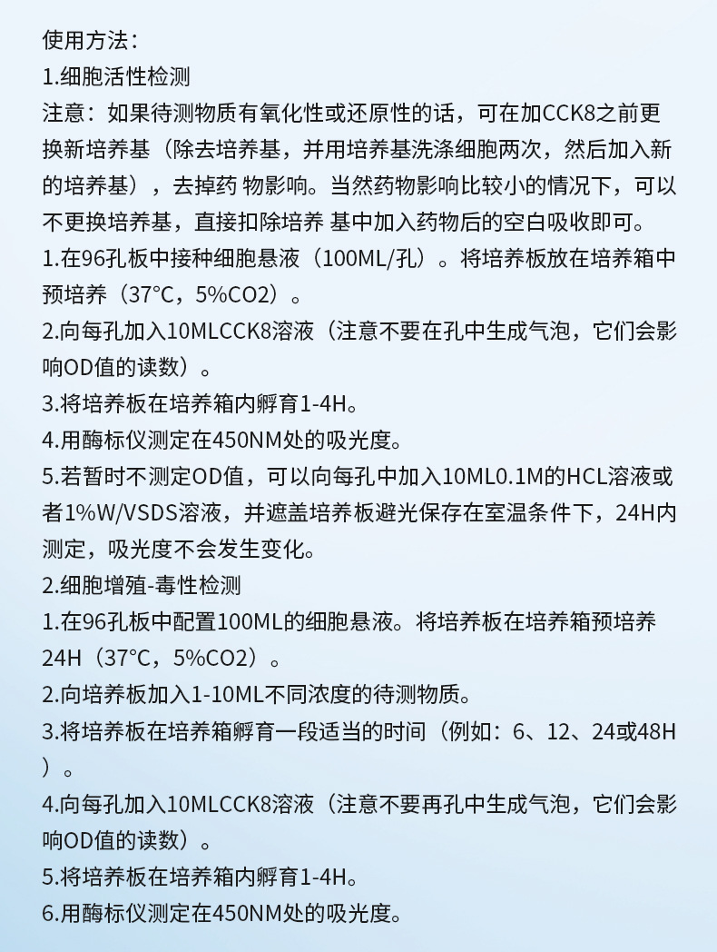 Область применения Widely used in cell proliferation and cell toxic fast high sensitivity detection kit