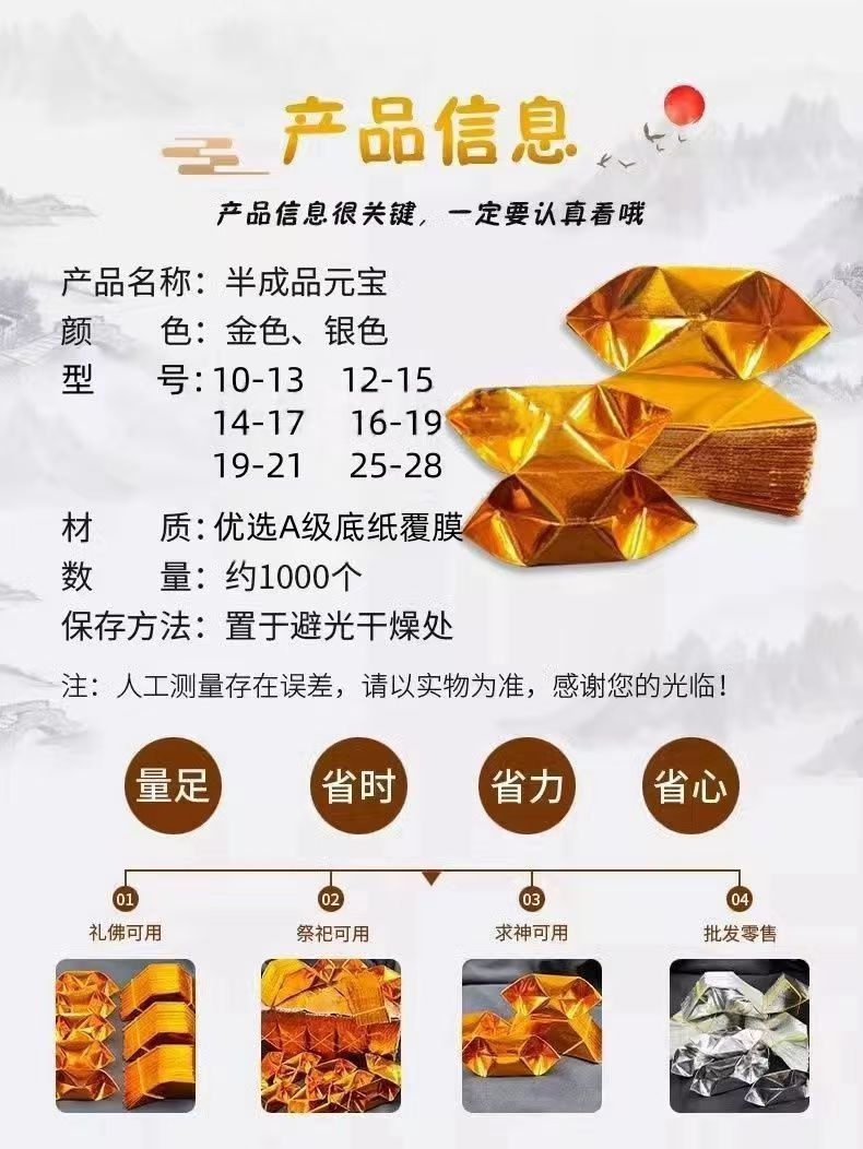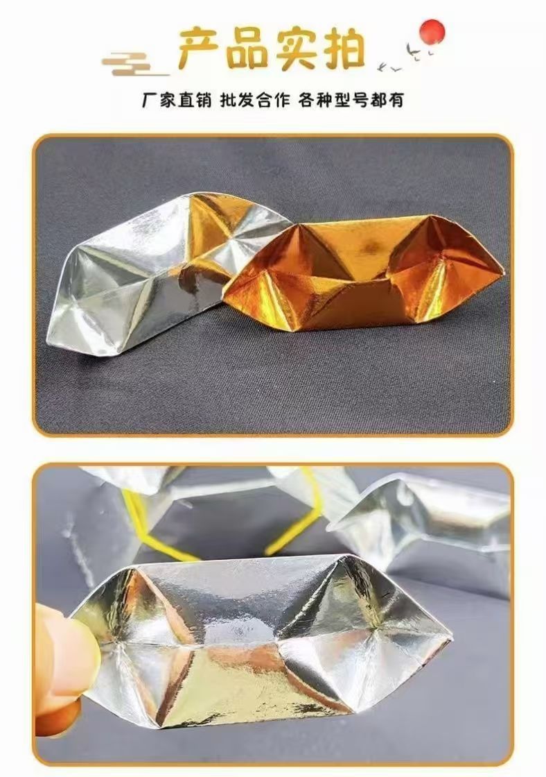 Оптовая продажа утолщенных угловых слитков полуфабрикатов 1000 жертвенных золотых бумажных фольгированных слитков