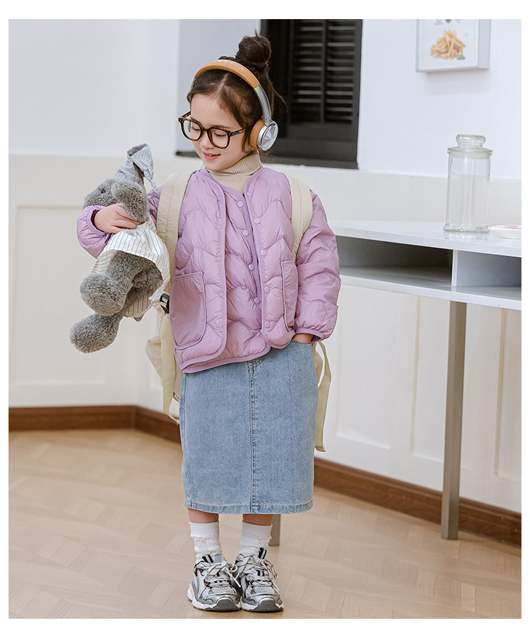 Новая легкая подстежка из 90% белого утиного пуха 2025 года, артефакт школьной формы, без воротника, для девочек