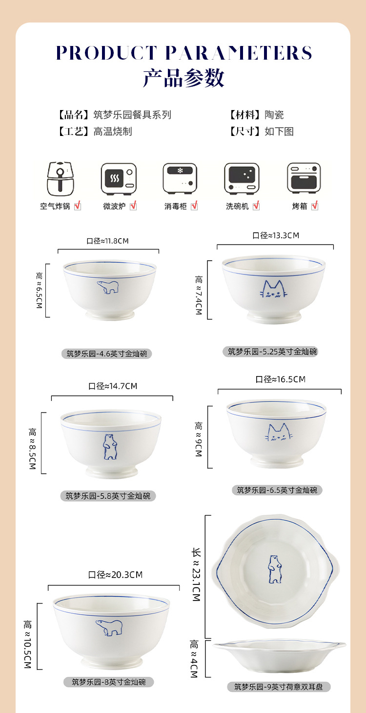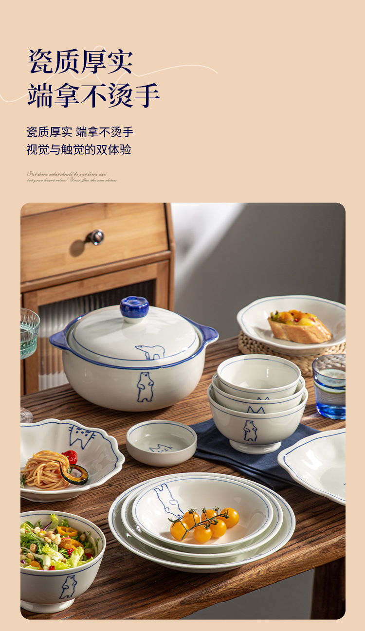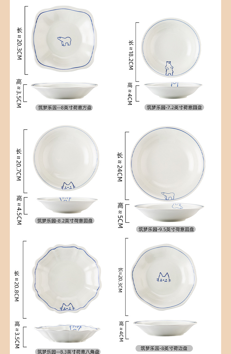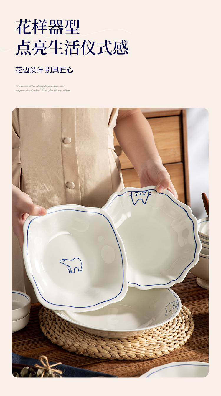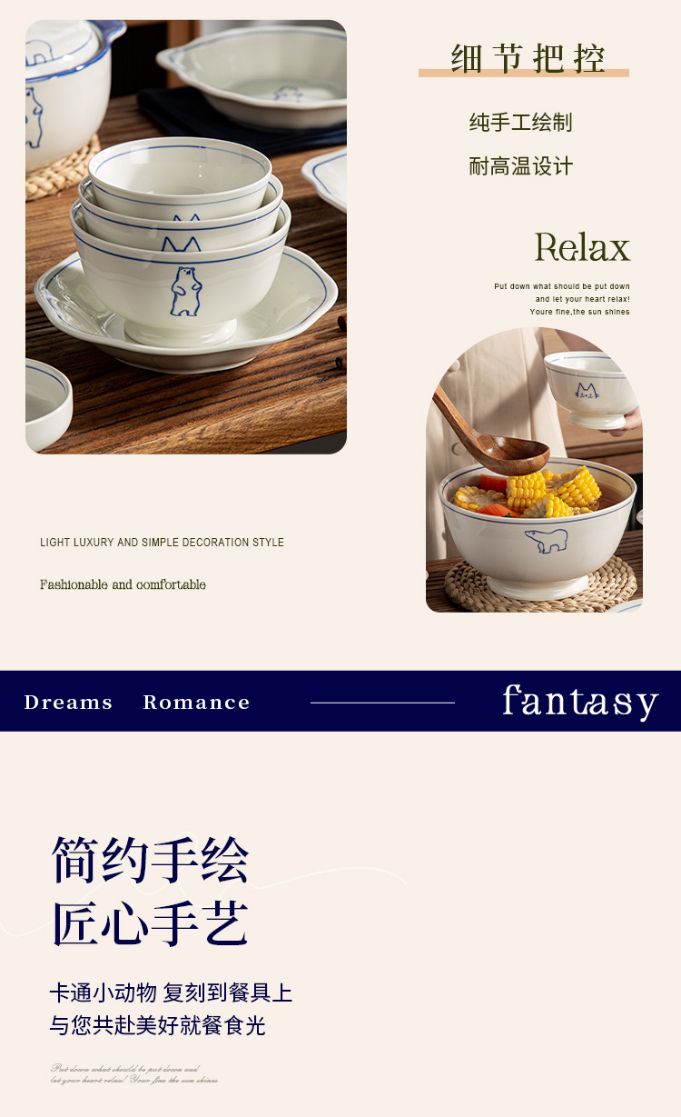 Серия Dream Paradise: керамическая тарелка, миска, набор посуды с мультяшными животными в скандинавском стиле