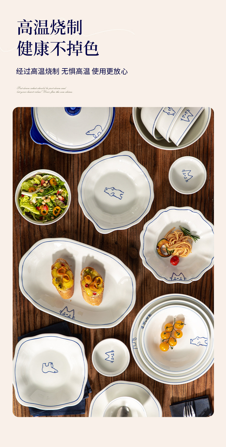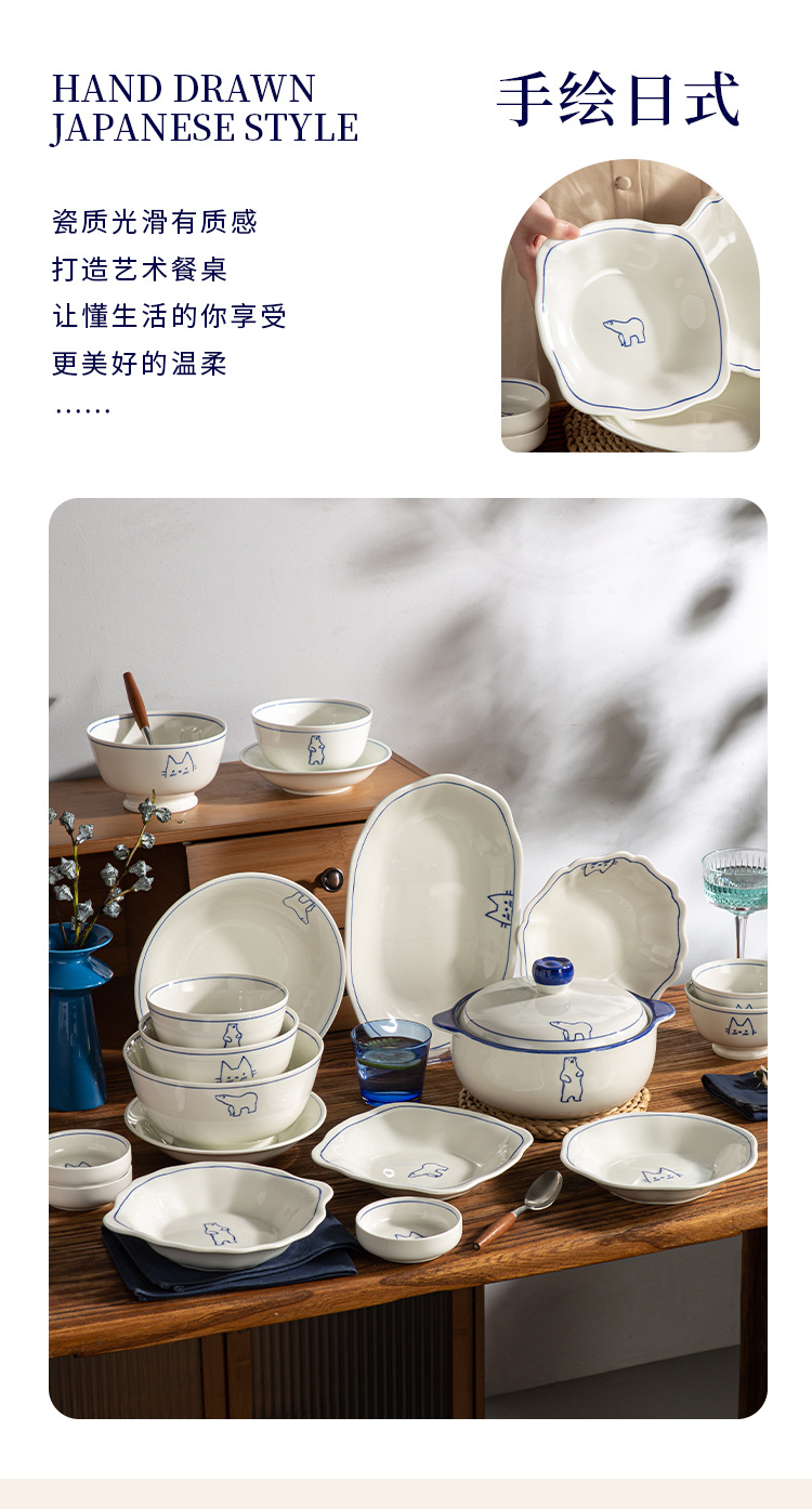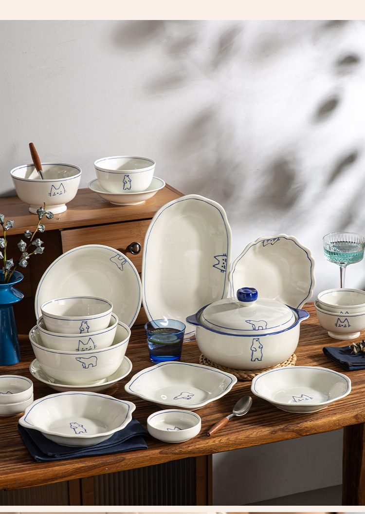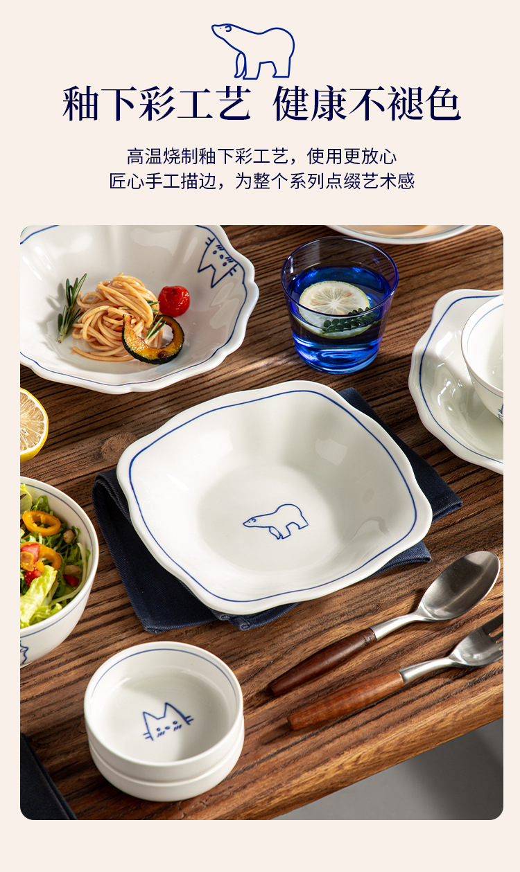 Серия Dream Paradise: керамическая тарелка, миска, набор посуды с мультяшными животными в скандинавском стиле