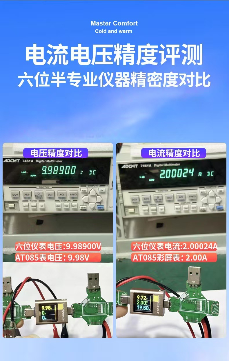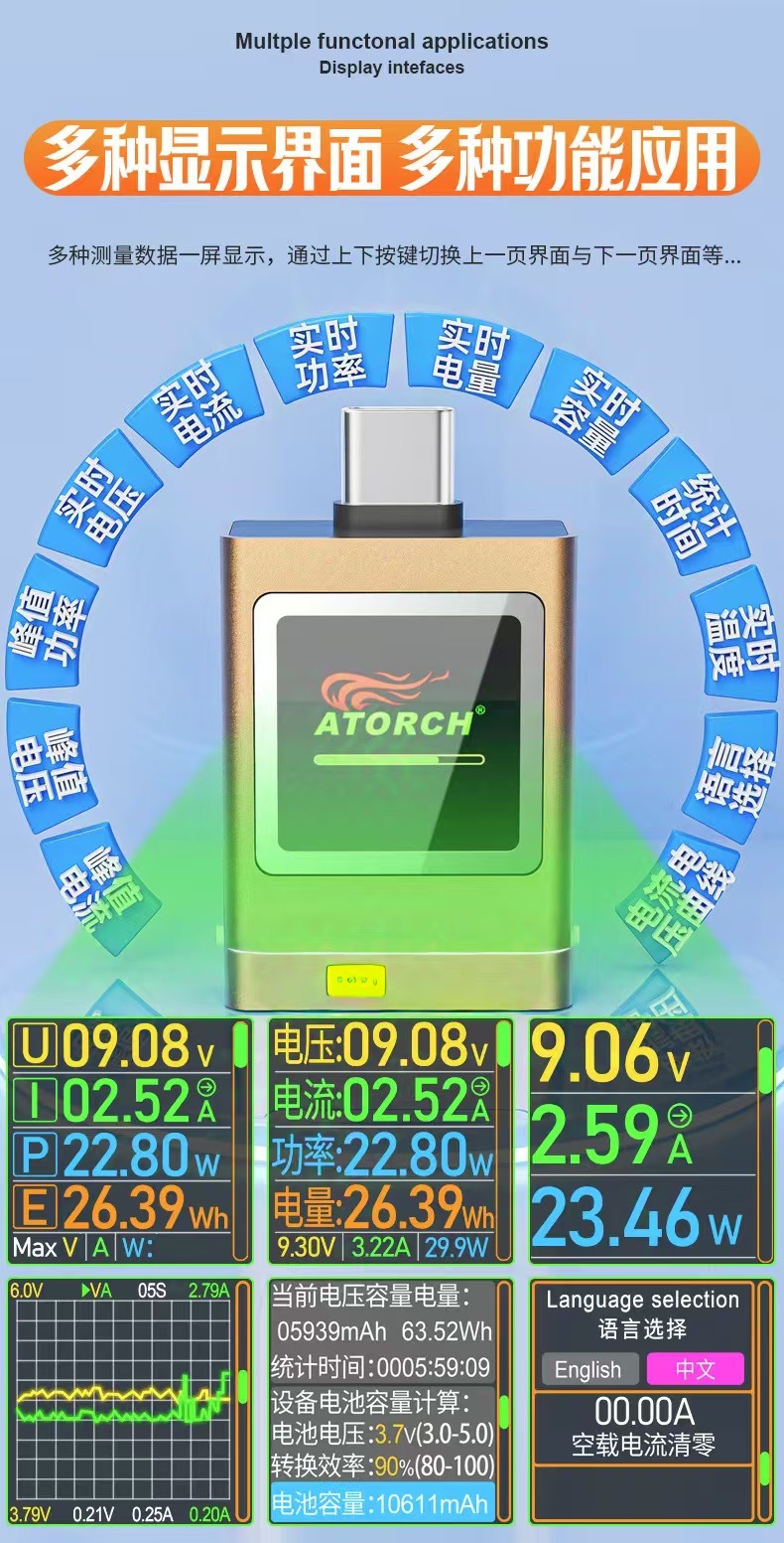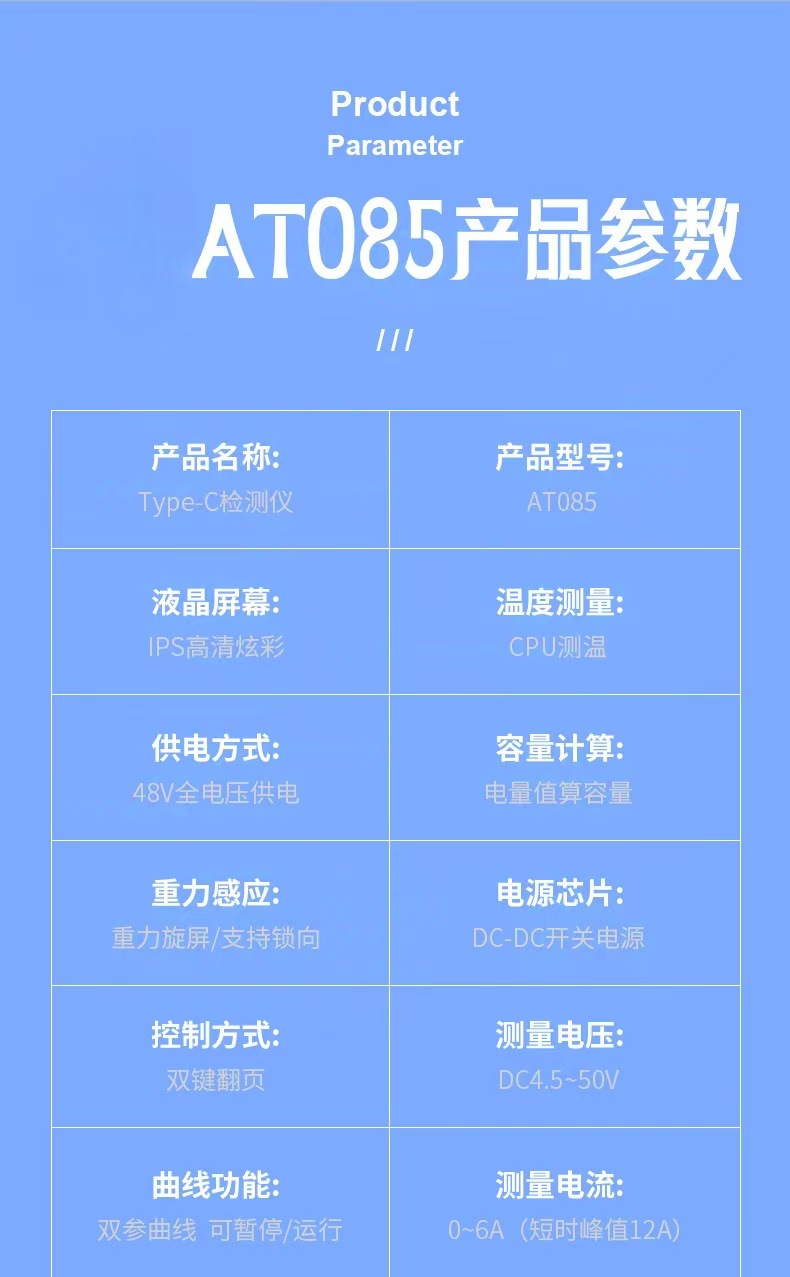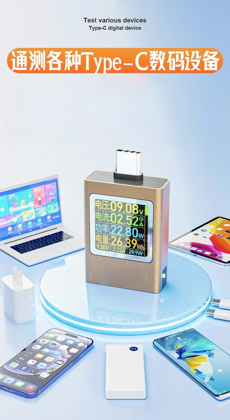 Зарядное устройство AT085C Type-C PD3.1 для мобильных телефонов, тестер напряжения и тока USB