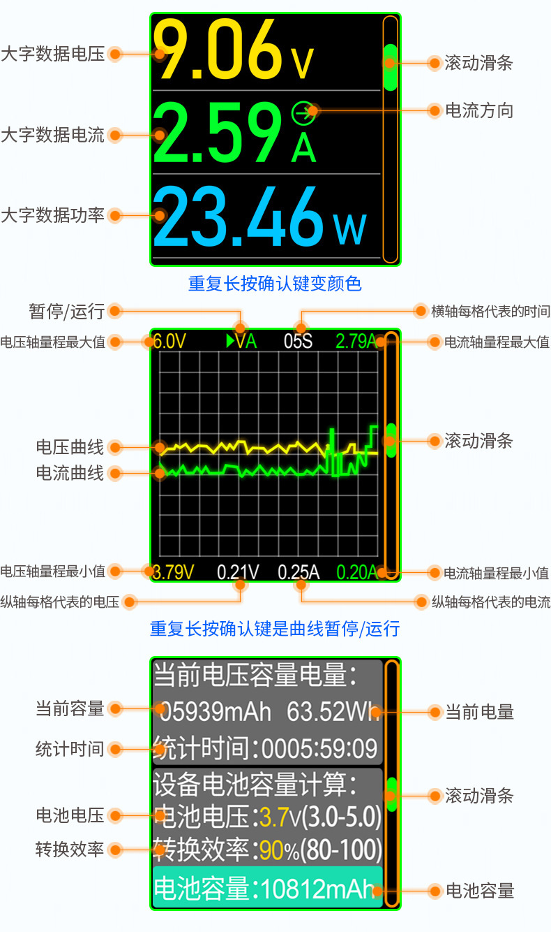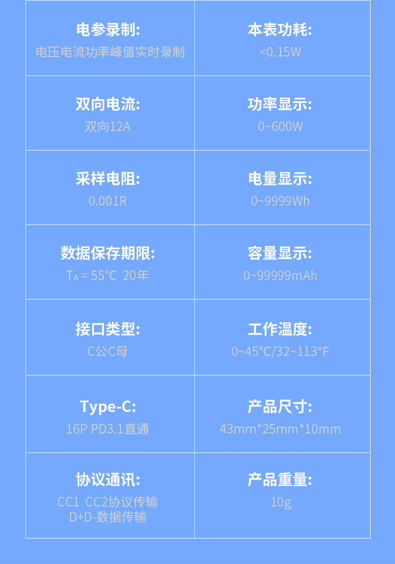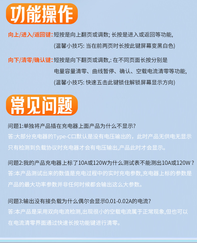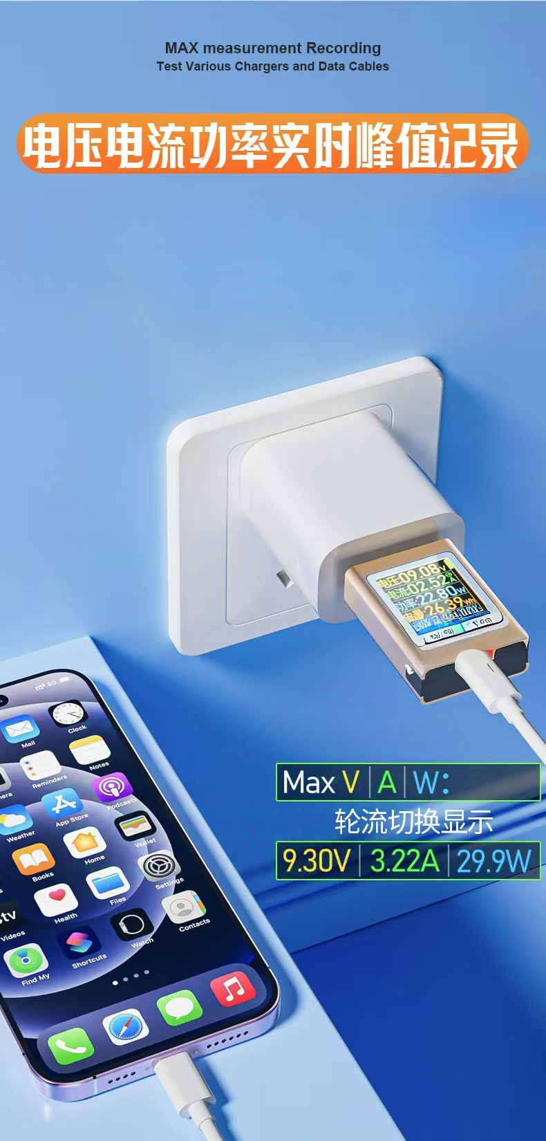 Зарядное устройство AT085C Type-C PD3.1 для мобильных телефонов, тестер напряжения и тока USB