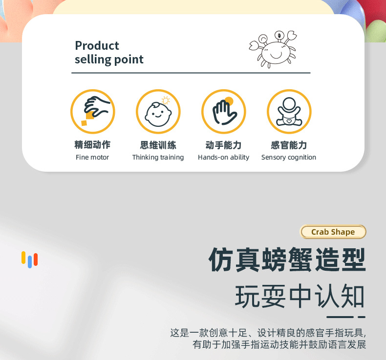 Индивидуальные образовательные игрушки для младенцев для хватания и упражнений 0-3 года Игрушка-грызунок Маленький краб