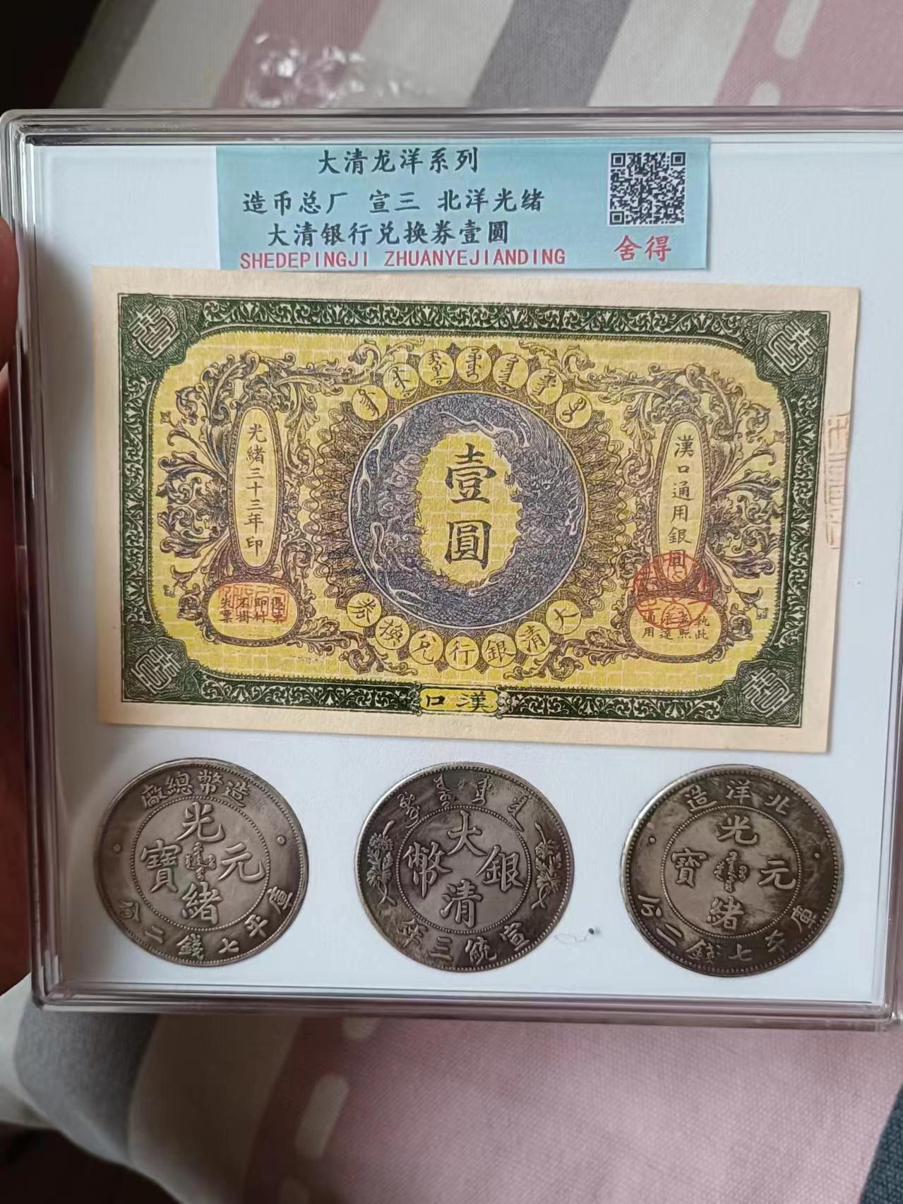 Антикварные золотые монеты Республики Китай, серебряные долларовые монеты, три монеты и одна банкнота, антикварный набор, оцененные монеты династии Цин