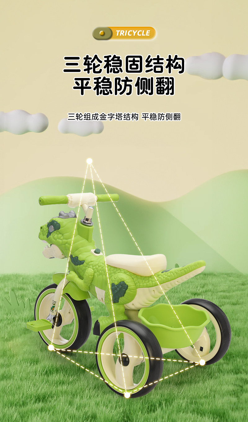 Детский трехколесный велосипед в виде динозавра для детей 2-6 лет, подарок на день рождения