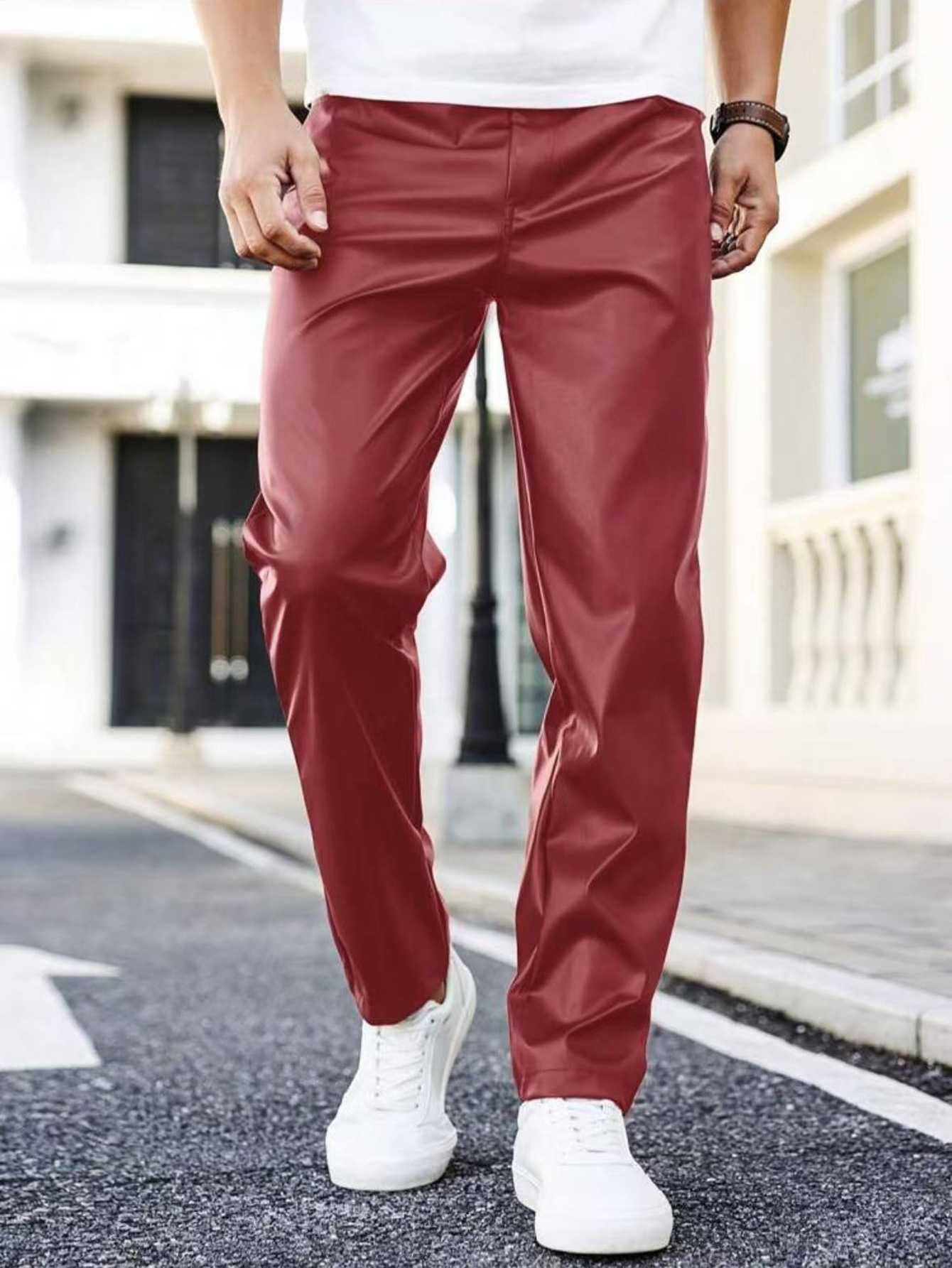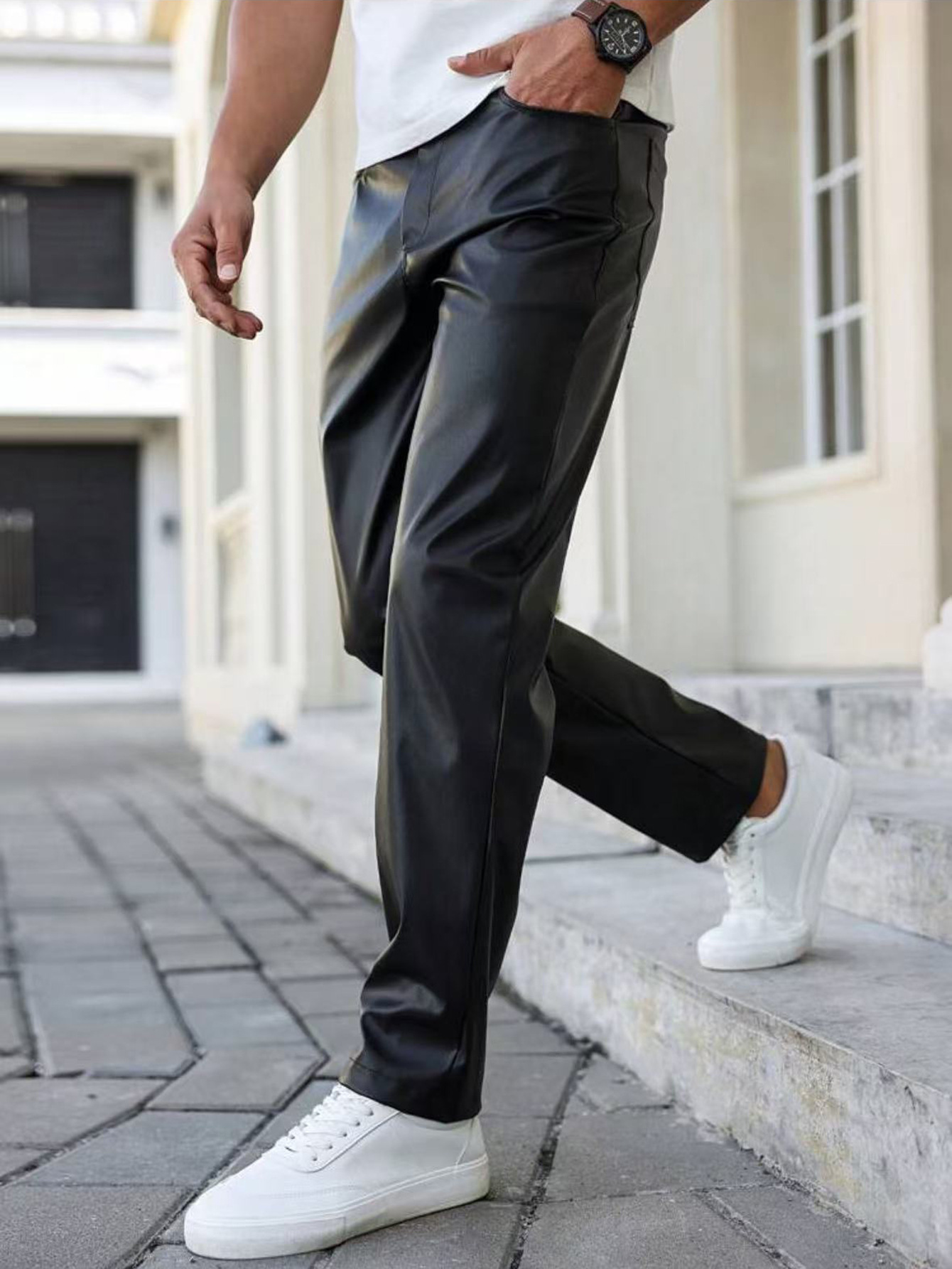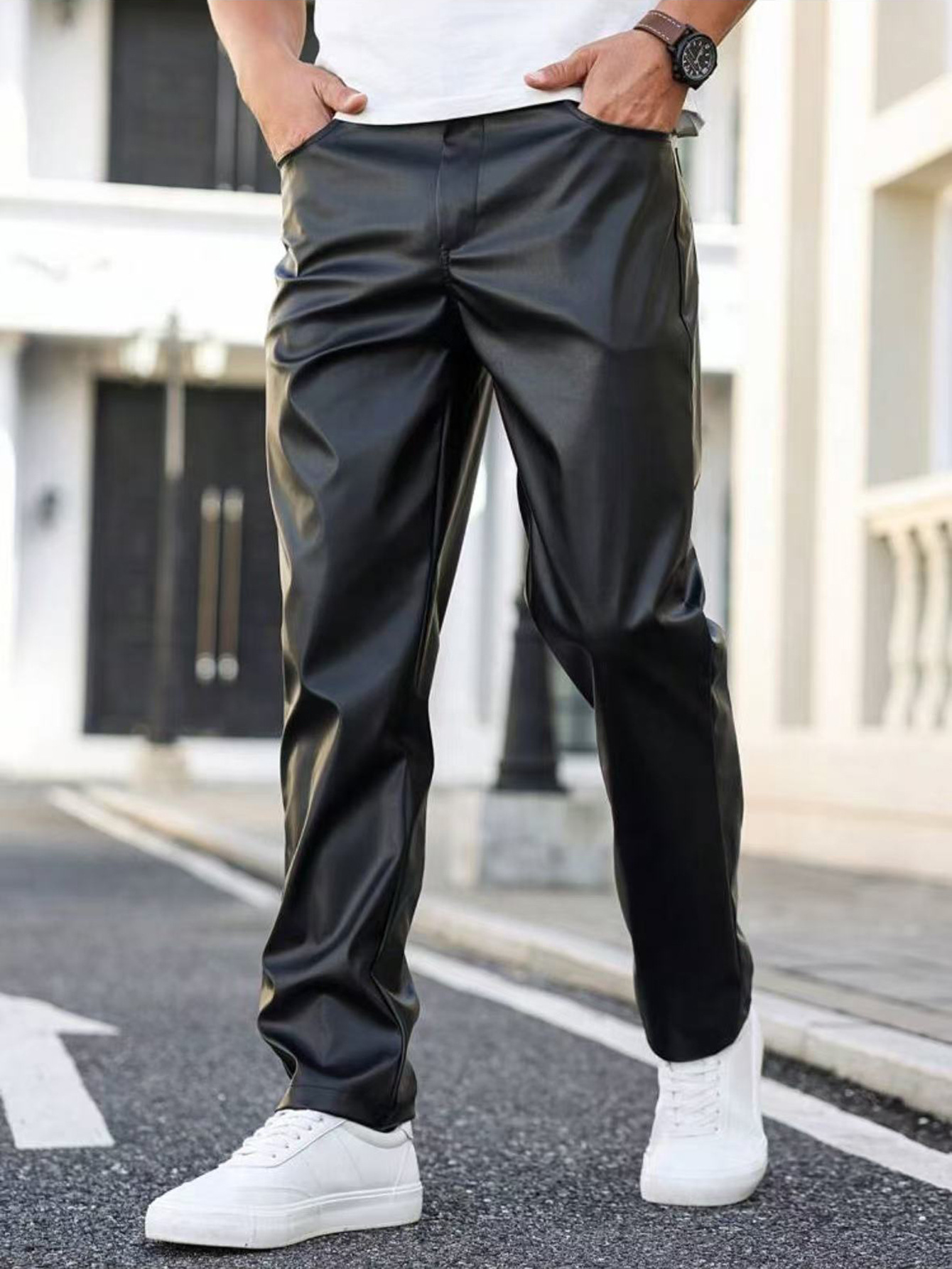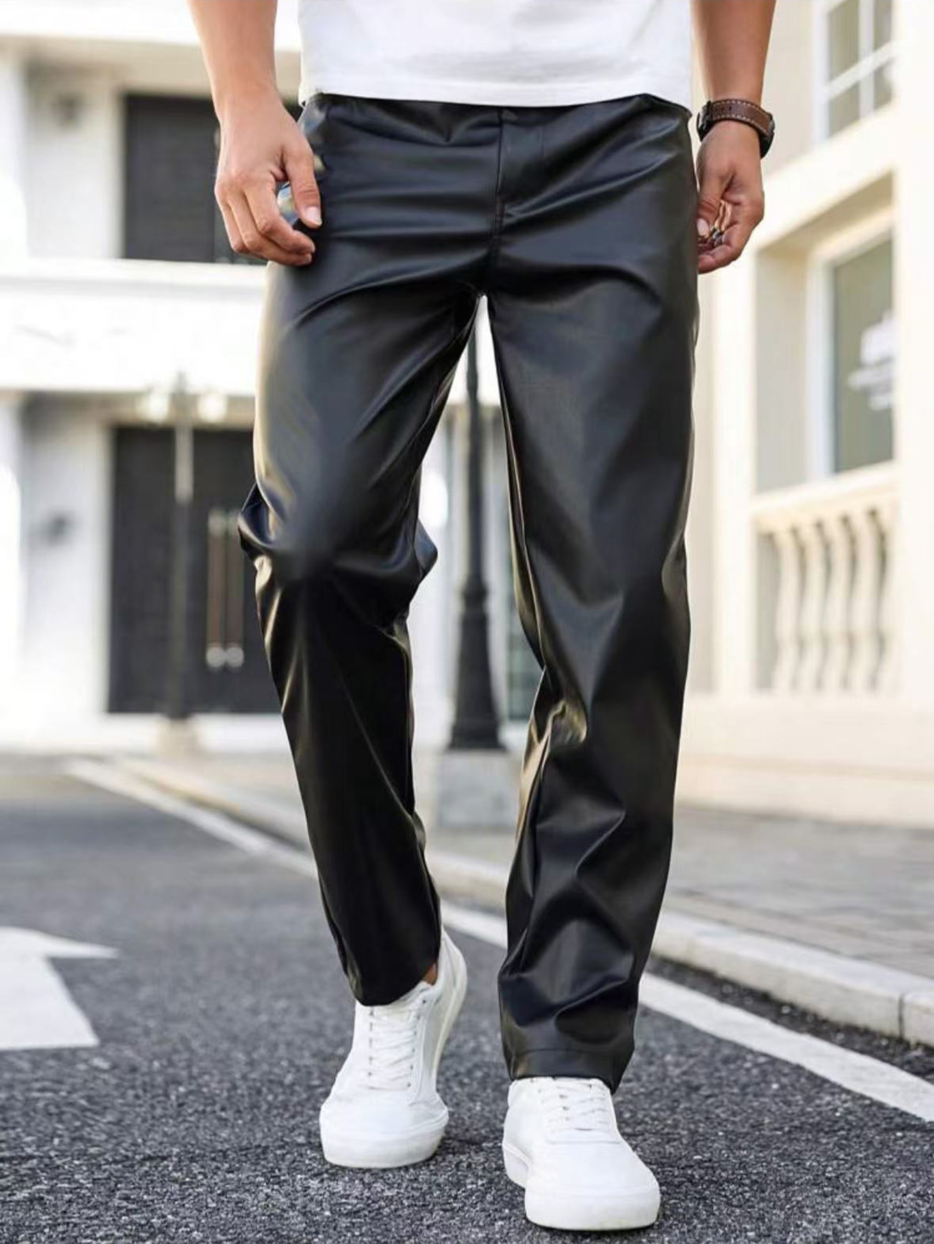 2025新款跨境男士机车骑行皮裤男欧美直筒PU皮裤
