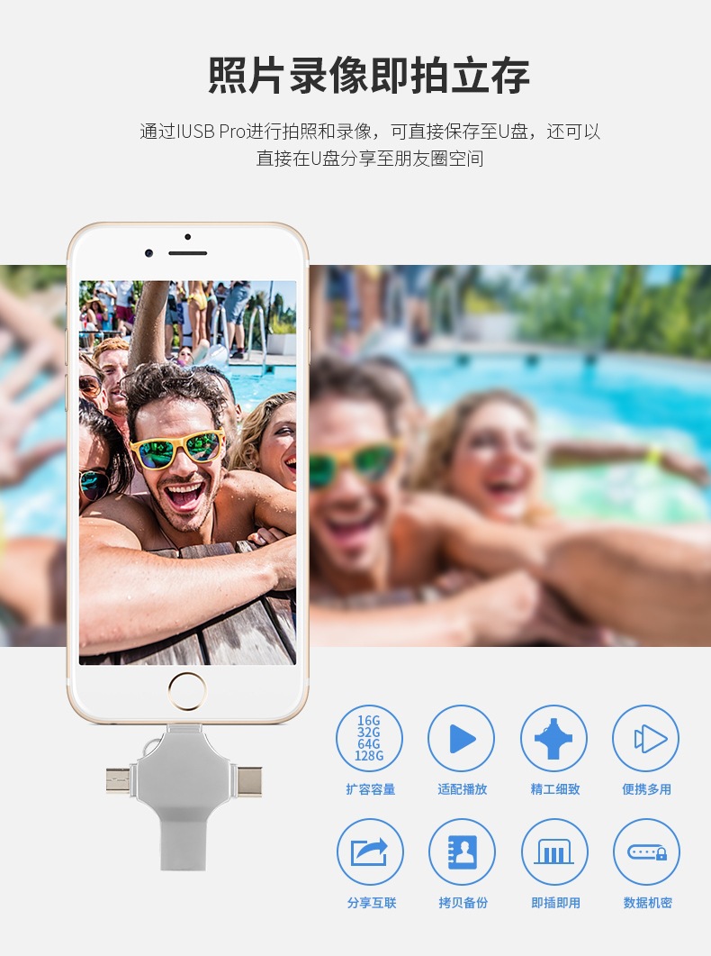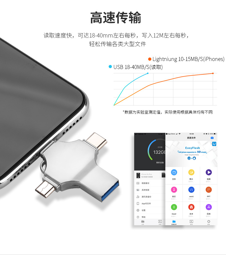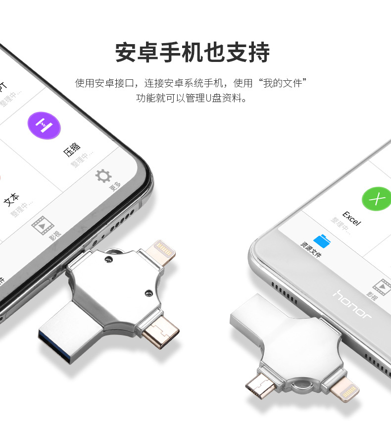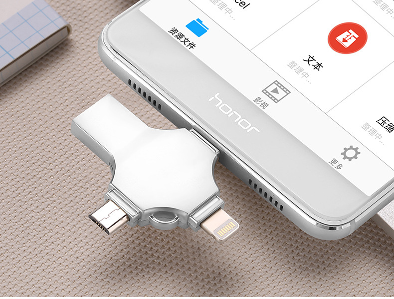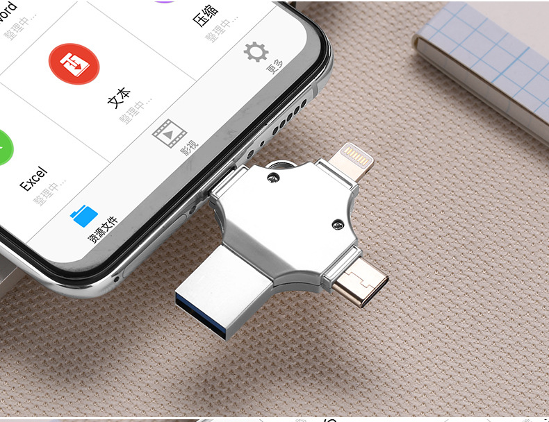 Кросс-бордерный четырехвходной металлический USB флеш-накопитель 256Г, подходит для iPhone, Android, компьютеров, Type-C, мобильных телефонов