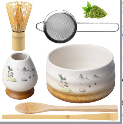 Чаша для матча Yunshan, 6 предметов, венчик, фильтр, ложка, желтый ремешок с японской этикеткой