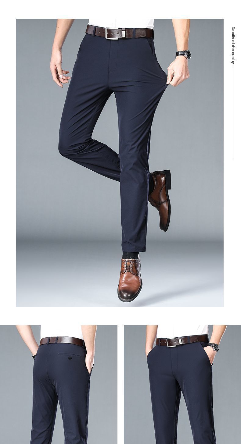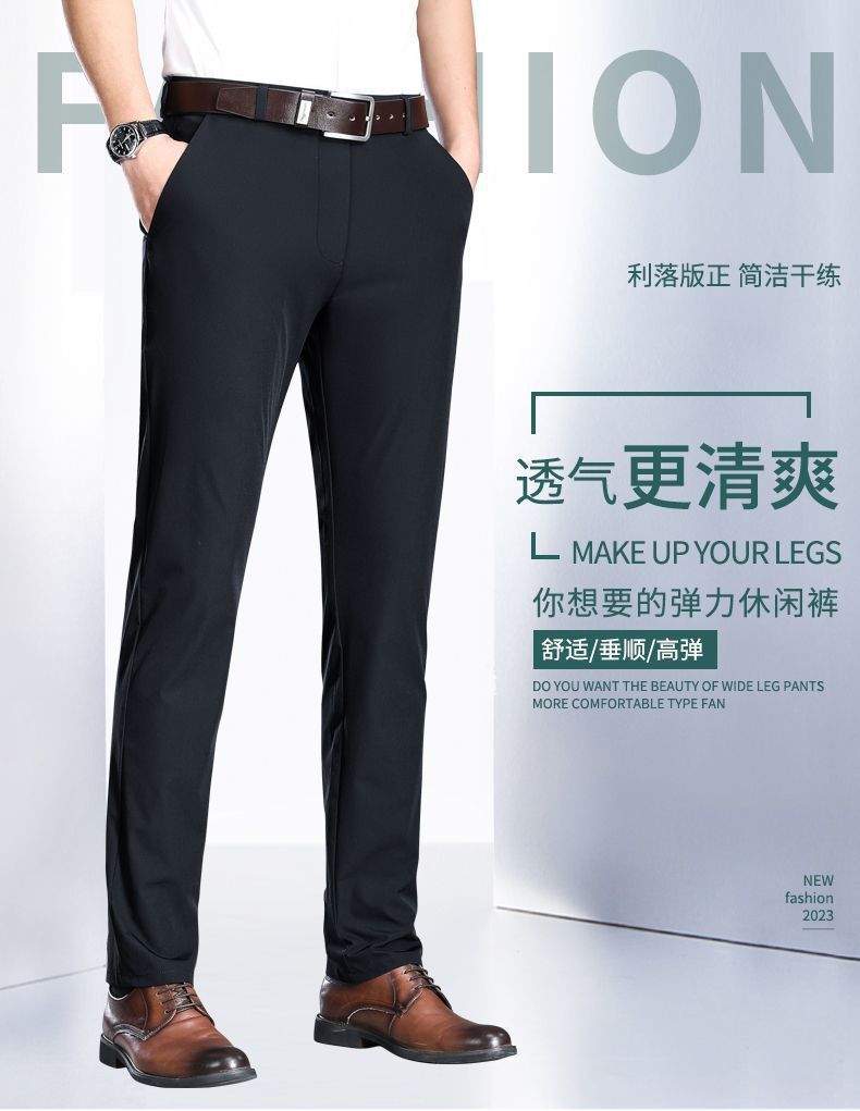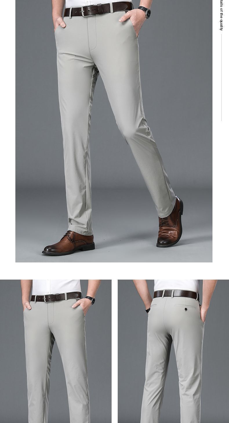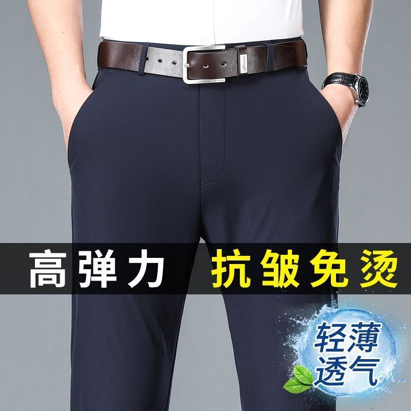 Летние тонкие брюки из льняного шелка для мужчин среднего возраста, высококачественные эластичные, не требующие глажки, прямые элегантные брюки