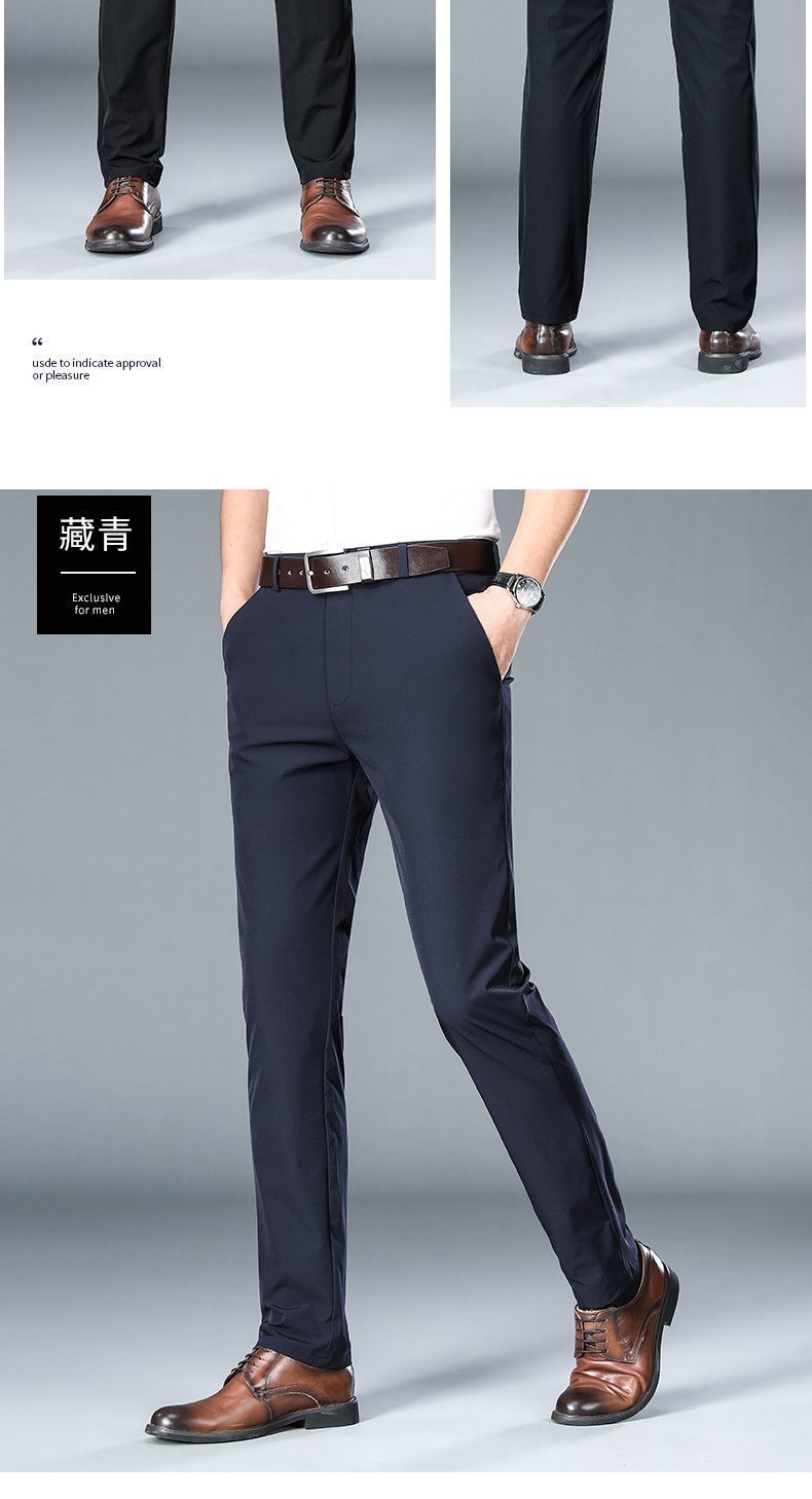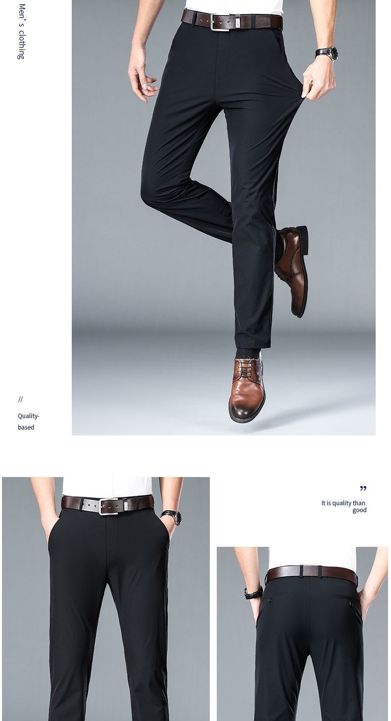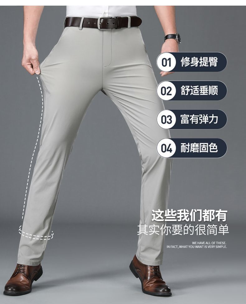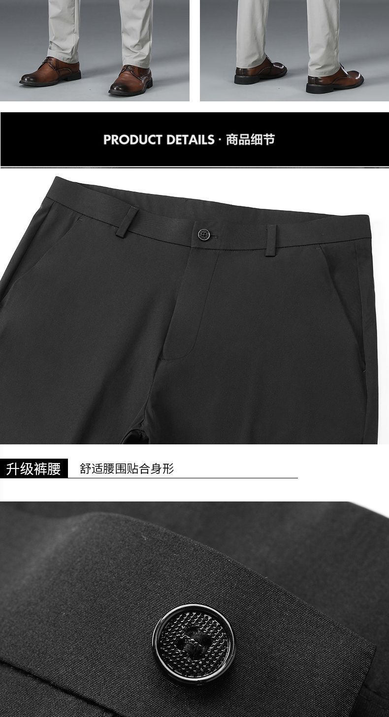 Летние тонкие брюки из льняного шелка для мужчин среднего возраста, высококачественные эластичные, не требующие глажки, прямые элегантные брюки