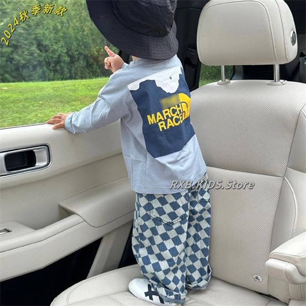 Комплект детской одежды, осень 2025, корейский стиль, модный, толстовка и брюки в клетку, двухпредметный комплект