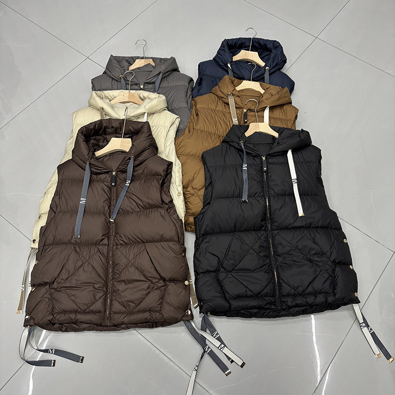 модный зимний жилет с капюшоном 2025 года, европейская версия, стеганая куртка, трендовая одежда с алмазным узором
