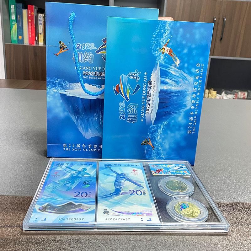 冬奥会纪念币纪念钞组合里面包含:冬奥会纪念钞2张【冰上运动、雪上运动各1张】+冬奥纪念币2枚【冰上运动、雪上运动各1枚】+亚克力包装
