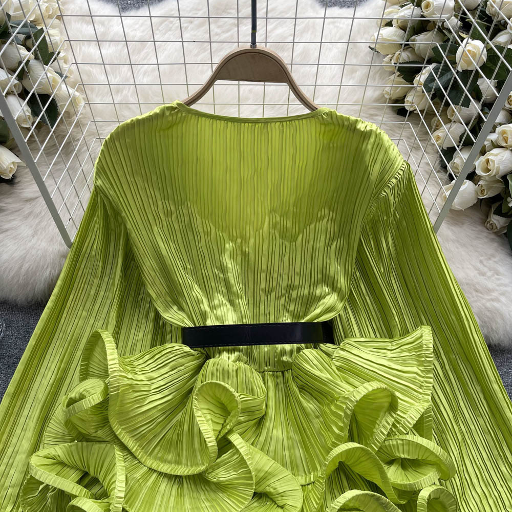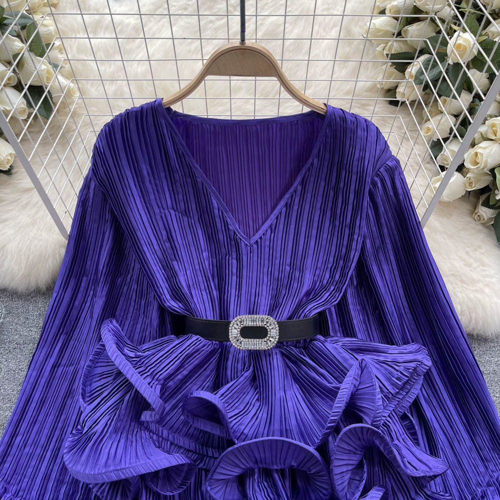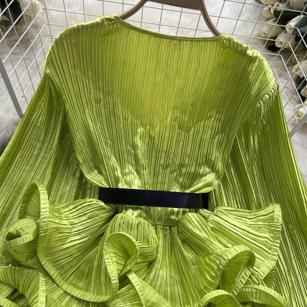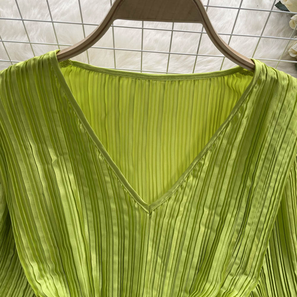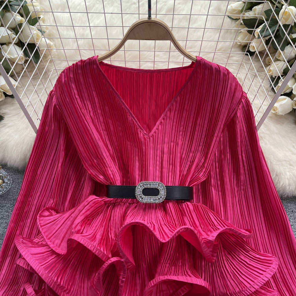 Элегантный свободный топ из сатина с длинным рукавом, рюши, фонарные рукава, нишевый дизайн, рубашка с V-образным вырезом
