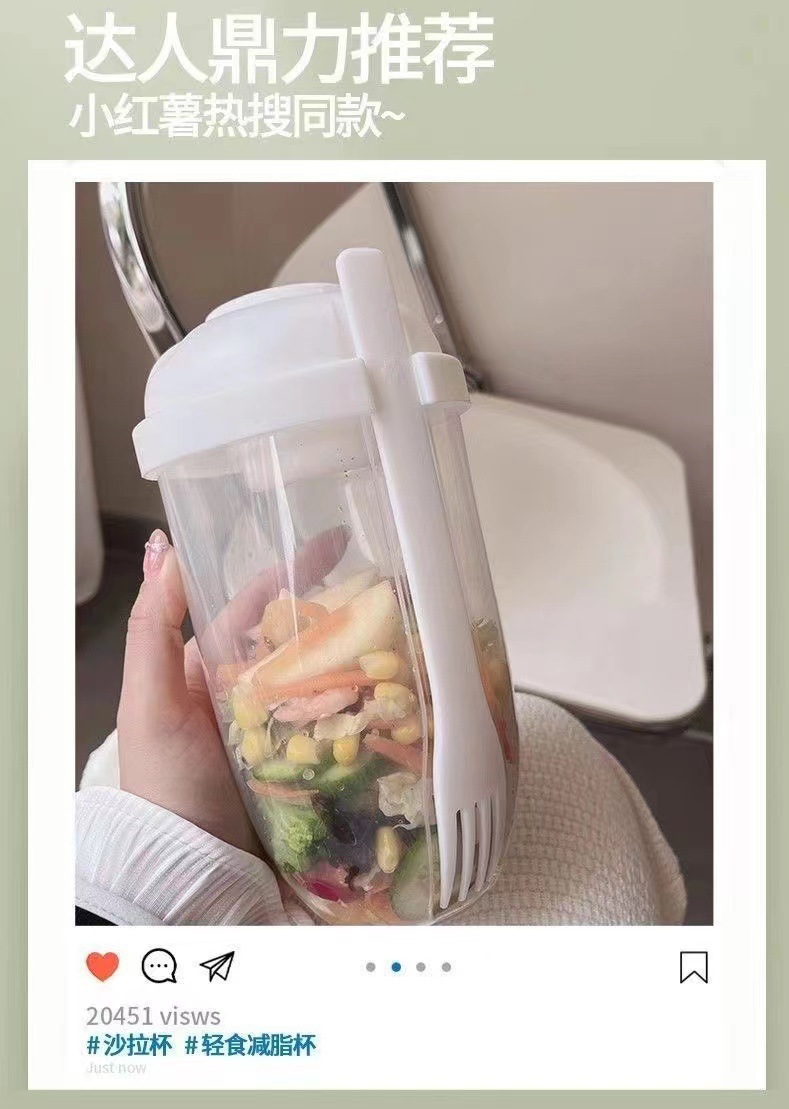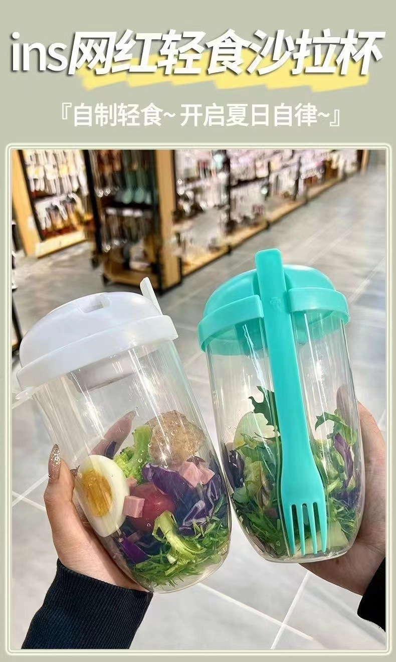 Кросс-бордерный салатный стакан с ложкой и крышкой для студентов, портативный фруктово-овощной легкий перекус, молочный стакан, банка для молочного порошка