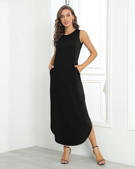 платье Amazon иностранной торговли европейской и американской моды с круглым вырезом повседневное безрукавное платье