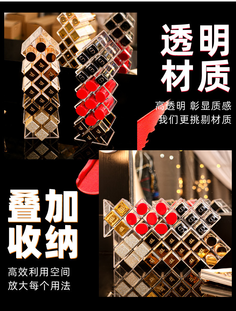 Ящик для хранения помады на 16 ячеек, прозрачный акриловый органайзер для косметики