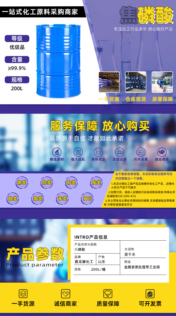 Оптовая продажа пирофосфорной кислоты, промышленный класс, катализатор, пищевая добавка, содержание 85%, термический мокрый процесс, фосфорная кислота 85